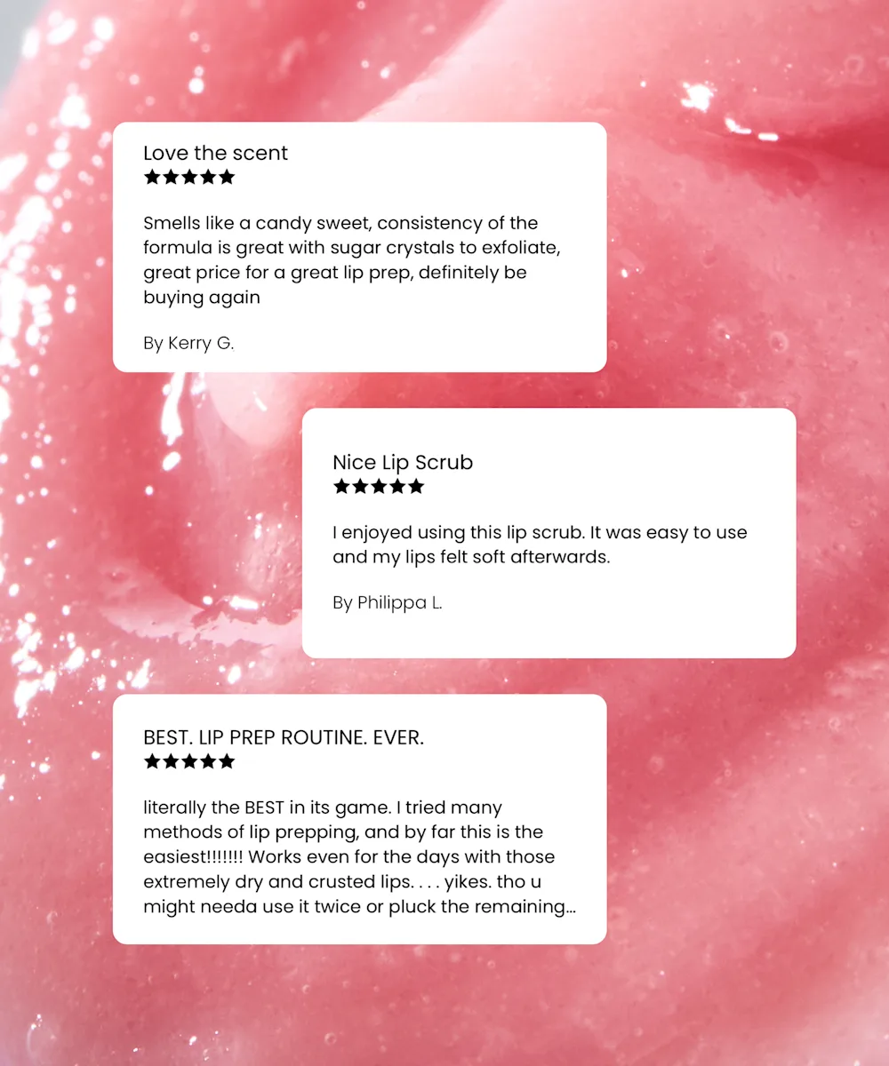 Sugar Scrub: Exfoliating sugar crystals gently buff and melt away to leave lips smoother and softer.