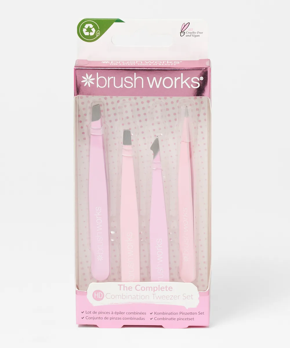 جددي مجموعة الجمال الخاصة بك مع Brushworks HD Combination Tweezer Set in Pink. مصنوعة من الفولاذ المقاوم للصدأ عالي الجودة والمصنوع يدويًا، هذه المجموعة المكونة من أربع قطع من الملاقط مثالية للأداء والدقة، مع كل زوج مثالي لغرض مختلف.