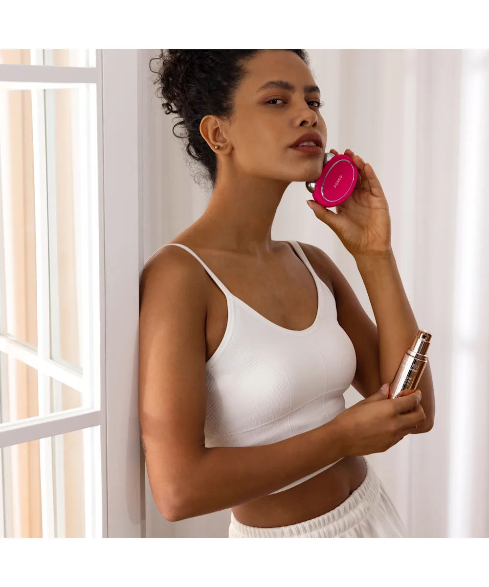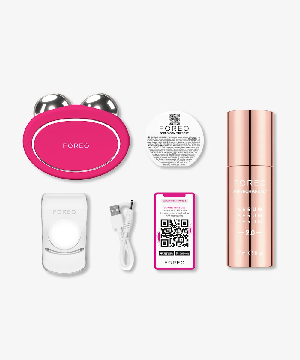 جهاز تنغيم FOREO BEAR™ 2 Microcurrent: جهاز تنغيم للوجه يستخدم تيارات ميكروكرنت لرفع وتنغيم ونحت البشرة، مما يقلل من ظهور الخطوط الدقيقة والتجاعيد.
