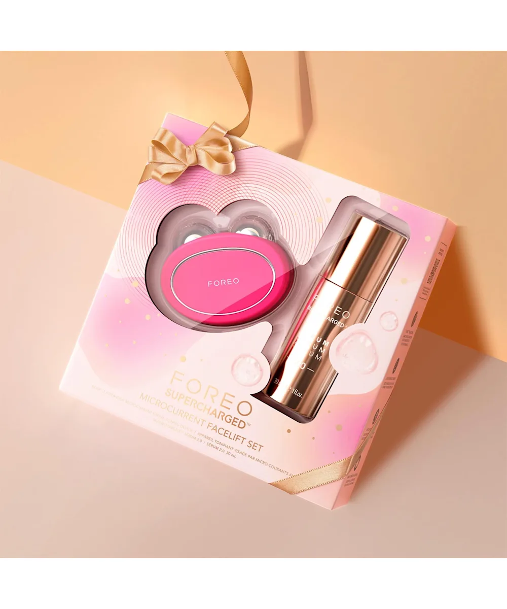 حققي بشرة مشرقة ومرفوعة مع مجموعة FOREO SUPERCHARGED™ Microcurrent Facelift Set، وهي مجموعة مختارة بعناية مصممة لاستعادة الثبات وتنعيم التجاعيد وزيادة المرونة. تجمع هذه المجموعة الكل في واحد بين تقنية الميكروكرنت المتقدمة وسيروم مشد للبشرة عالي الأداء لتفتيح وتنشيط وتنشيط البشرة. معبأة بشكل جميل، تجعلها الهدية المثالية لأي شخص يبحث عن تعزيز روتين العناية اليومي بالبشرة أو يعامل نفسه بتجربة تشبه السبا في المنزل.