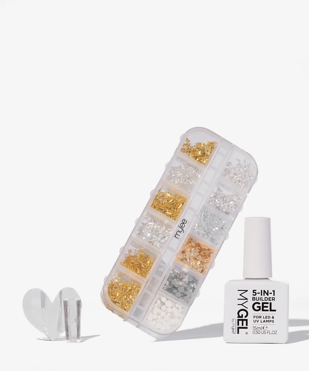 لماذا يجب أن تبقى المجوهرات على أصابعك فقط؟ مع Mylee The Crown Jewels، يمكنك البدء في تزيين أظافرك بالمجوهرات. يتميز بمزيج من الزخرفات الفضية والذهبية التي تم تصميمها لتعلق على الأظافر لتمنحها لمعانًا رائعًا، بالإضافة إلى جل بناء شفاف لمساعدة تثبيت المجوهرات بشكل جيد، ستغطيك هذه العدة بالمجوهرات الثمينة لتلك المناسبات الخاصة أو لإضفاء لمسة جمالية على إطلالتك. احصلي على أظافر جميلة!