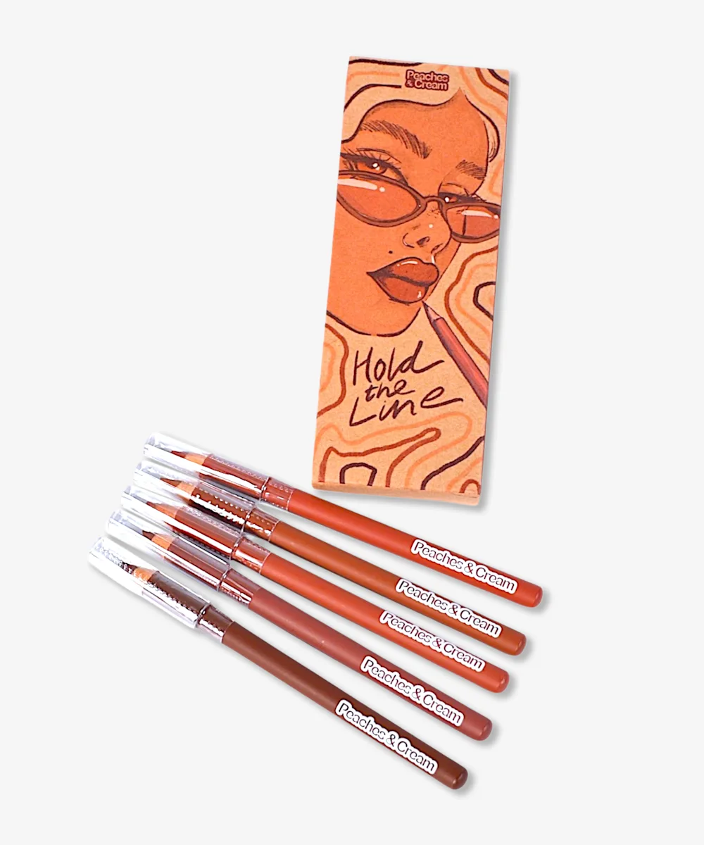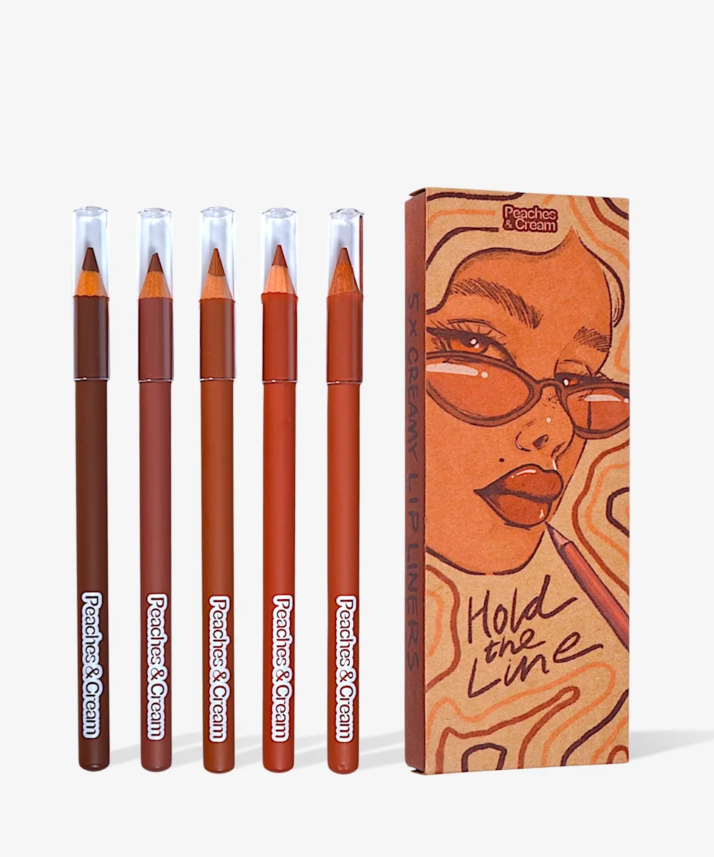 with the Peaches & Cream Hold The Line Box Set. It contains five creamy nude lip pencils in a range of flattering brown tones. Inspired by the 90s lip trends, these nude lip liners allow you to create a range of different looks including soft and natural lips to give more dramatic and defined looks. With colours to suit everyone, the Hold The Line Box Set is the perfect addition to your makeup bag and is one of the most popular products. All our the lip liners are velvety-soft, highly pigmented and feature a creamy, blendable formula that can be worn all over the lip to make your gloss last longer, or they can be used to define and line your lips.