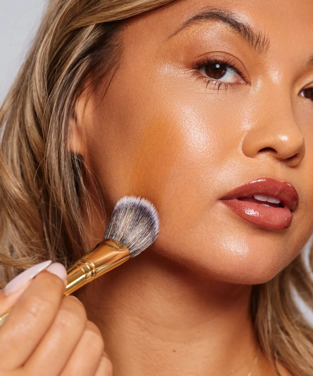 - Apply directly onto your face and blend out with a fluffy makeup brush.