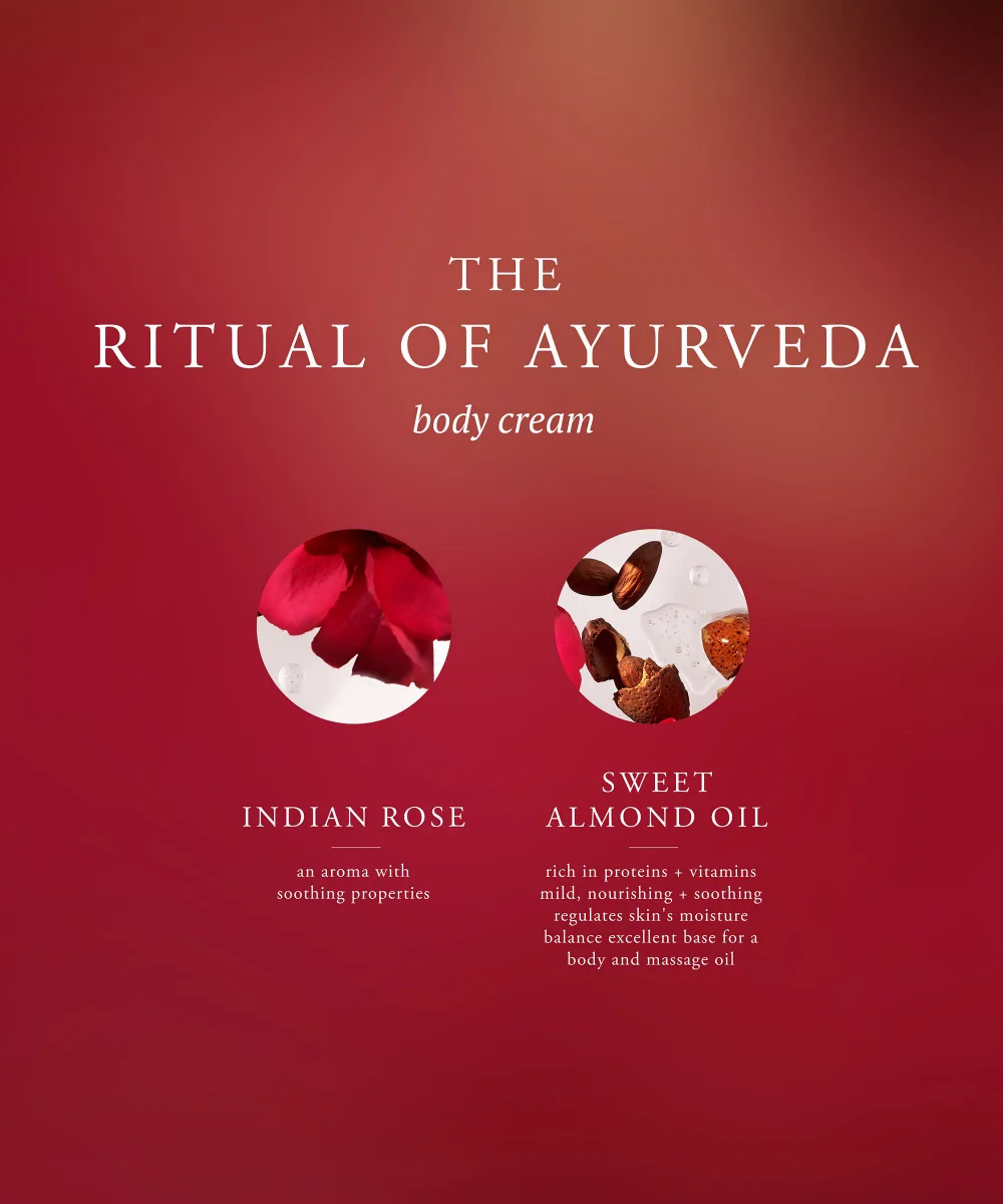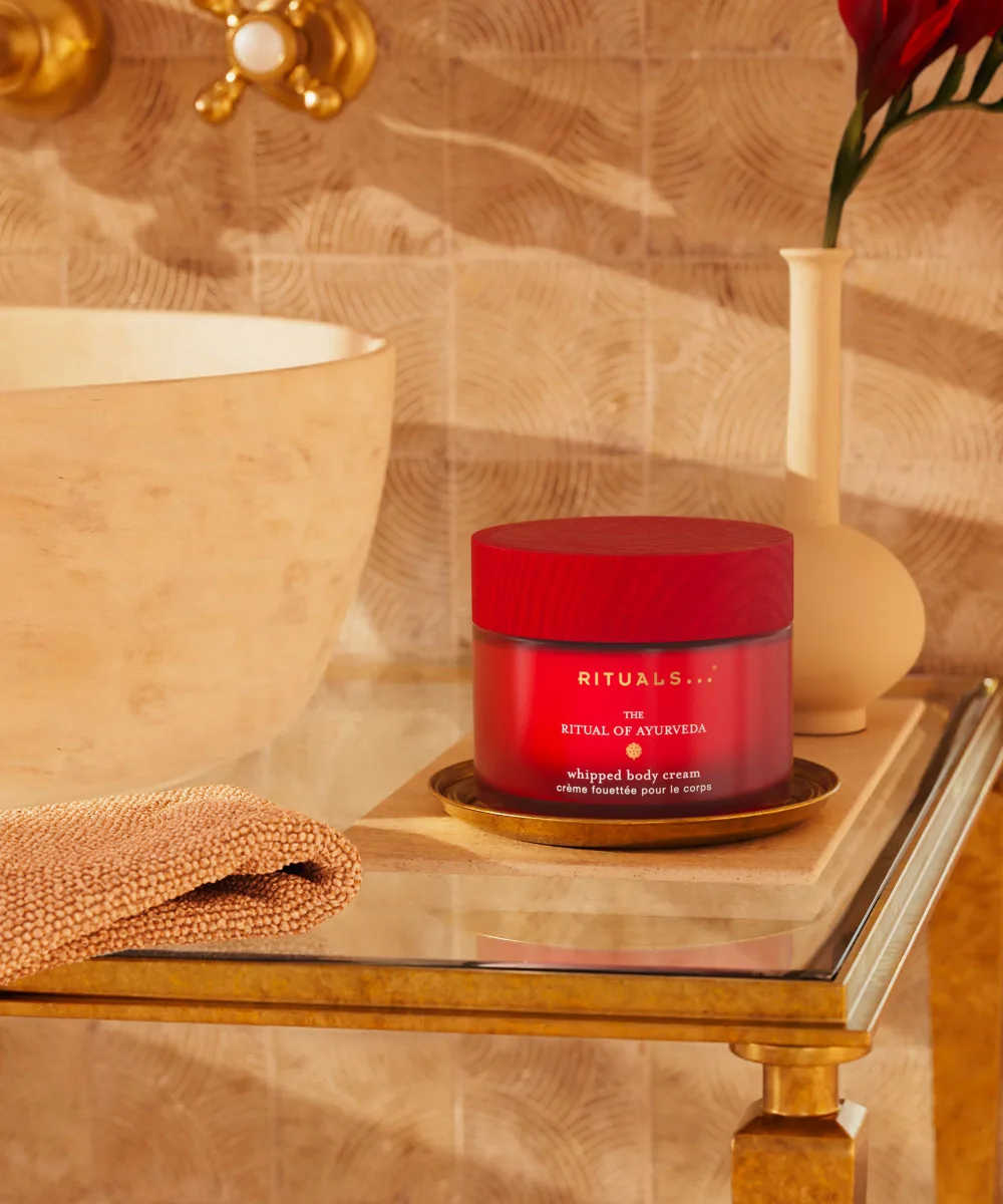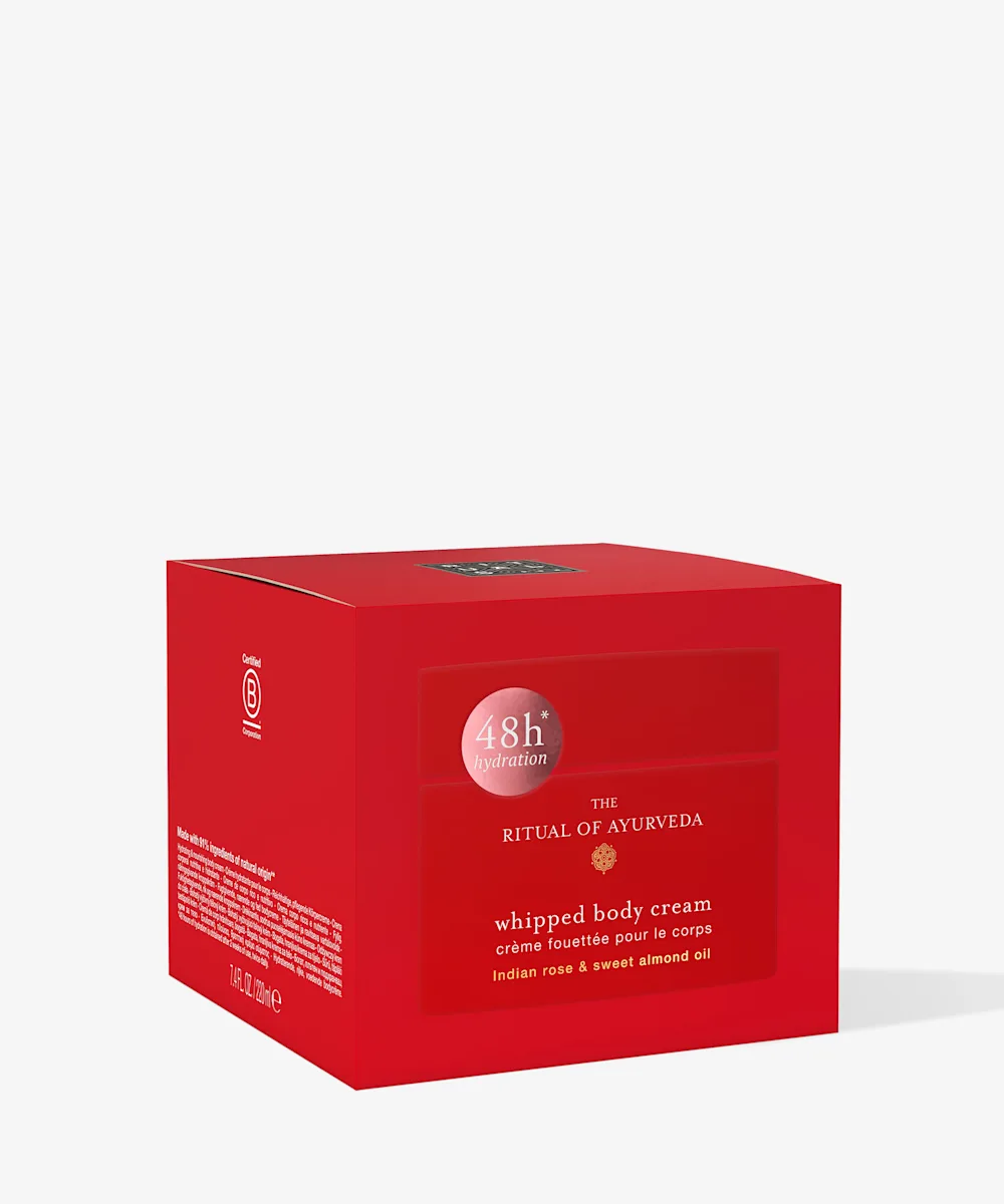 Indulge your skin with The Ritual of Ayurveda Whipped Body Cream from Rituals. Its rich, whipped texture melts effortlessly into your skin, leaving a non-greasy, silky-smooth finish while providing long-lasting hydration for up to 48 hours with the Moisture Lock Complex and a blend of nourishing oils. Infused with soothing Indian rose, almond oil, exotic spices, and white musks, it pampers your senses and leaves your skin delicately fragranced and irresistibly soft.