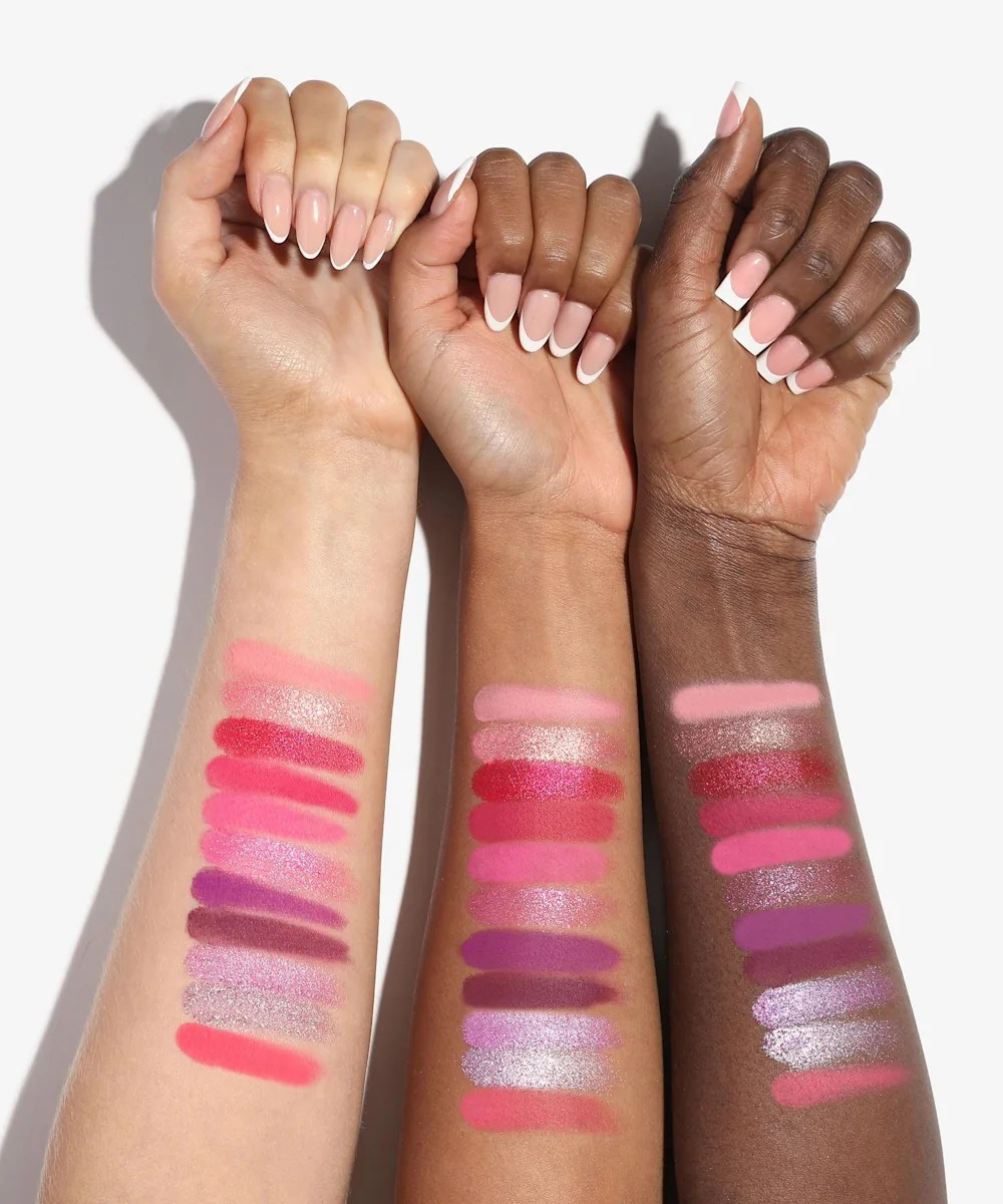 By BEAUTY BAY Berries 16 Colour Palette: CURVE, CARLET, SHAKE, MACARON, LILO, LOYALTY, DOLL, BUBBLEGUM, ROSEWOOD, JOURNAL: Talc, Mica, Silica, Triethoxycaprylylsilane, Ethylhexyl Palmitate, Polyisobutene, Magnesium Stearate, Bis-Diglyceryl Polyacyladipate-2, Tridecyl Trimellitate, Dimethicone, Phenoxyethanol, Tocopheryl Acetate, Ethylhexylglycerin, MAY CONTAIN: (+/-) Red 27 Lake (CI 45410), Titanium Dioxide (CI 77891), Red 7 Lake (CI 15850), Yellow 5 Lake (CI 19140), Iron Oxides (CI 77491, CI 77492, CI 77499), Ultramarines (CI 77007), Red 6 Lake (CI 15850).