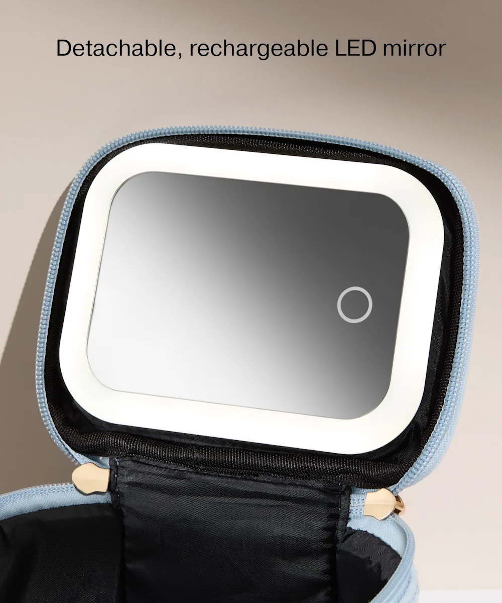 LED Mirror Mini Travel Beauty Bag Blue