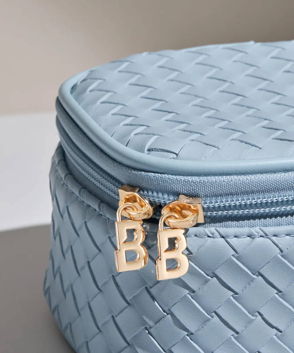 Store your beauty essentials safely and in style with the LED Mirror Mini Travel Beauty Bagfrom By BE AUTY BAY. Inside, you’ll find a detachable, rechargeable LED mirror, making it easy to apply or touch up your makeup wherever your plans take you. Made from blue woven PU with gold hardware, this structured case keeps your must-have products secure and organised. With custom ‘B’-shaped zip pulls and a gold embossed ‘B’ logo detailing, it combines functionality with a sleek, ultra-convenient design.