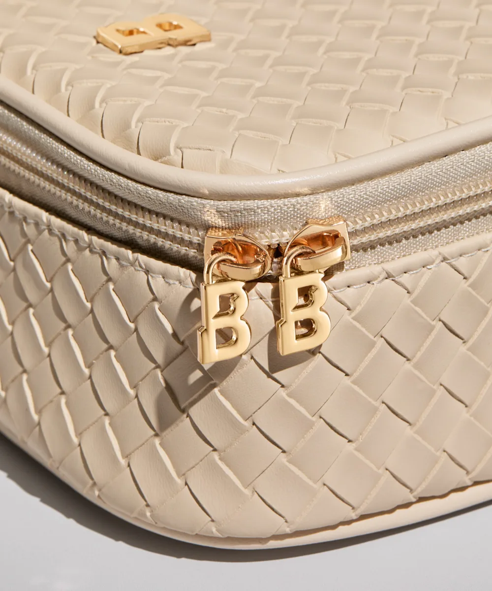 Store your beauty essentials safely and in style with the LED Mirror Mini Travel Beauty Bag from By BEAUTY BAY. Inside, you’ll find a detachable, rechargeable LED mirror, making it easy to apply or touch up your makeup wherever your plans take you. Made from cream woven PU with gold hardware, this structured case keeps your must-have products secure and organised. With custom ‘B’-shaped zip pulls and a gold embossed ‘B’ logo detailing, it combines functionality with a sleek, ultra-convenient design.