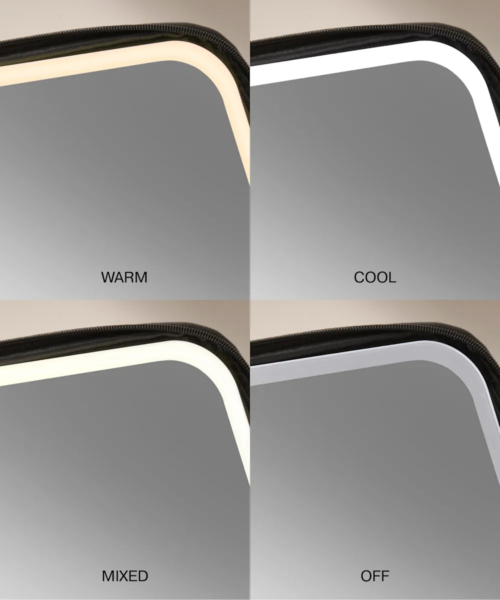 - Vier Lichteinstellungen verfügbar: warm, kühl, gemischt, aus