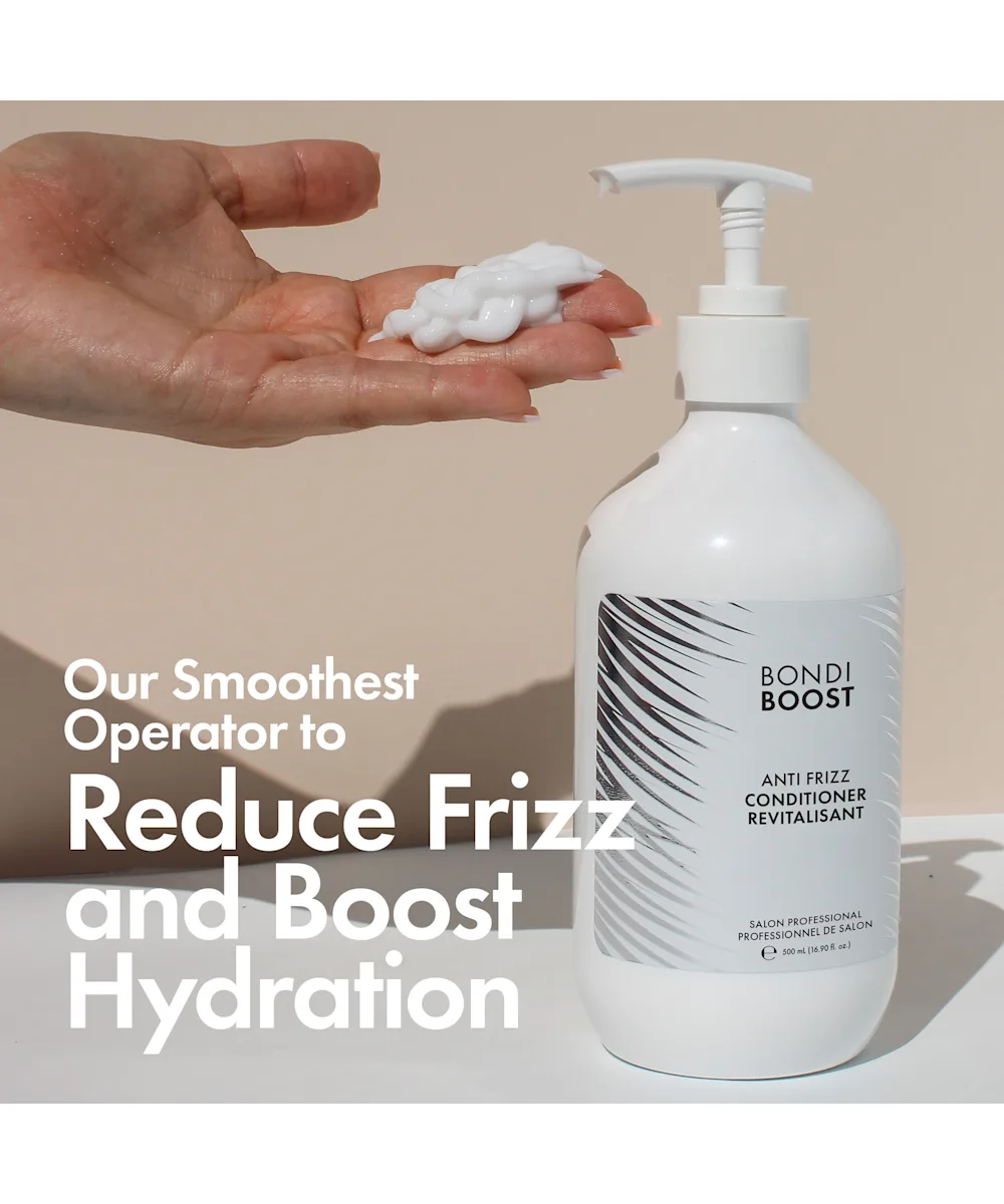 Bekämpfe unerwünschten Frizz mit dem Anti-Frizz-Conditioner von BondiBoost. Eine Mischung aus essentiellen Fettsäuren, Argan-, Avocado- und Kokosnussöl und Sheabutter zähmt Frizz und versorgt dein Haar mit Feuchtigkeit. Dieser haarglättende Conditioner trägt auch dazu bei, den Glanz und die Kämmbarkeit deines Haars zu verbessern. Dein Haar fühlt sich danach seidiger, gesünder und mit Feuchtigkeit versorgt an.