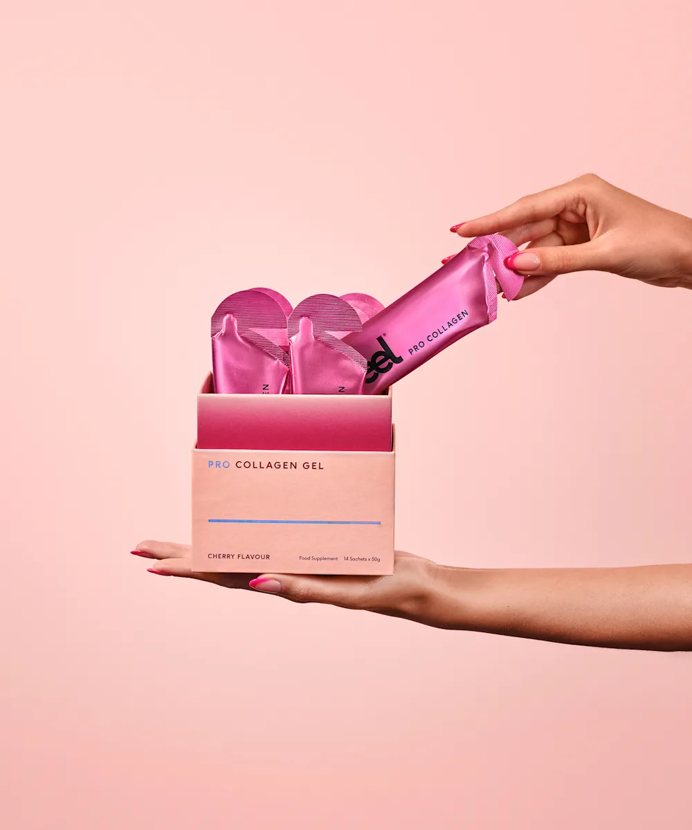 Unterstütze dein Haar, deine Nägel und deine Haut von innen mit den Feel Pro Kollagengels. Dieses Nahrungsergänzungsmittel wird schnell aufgenommen. Es enthält VeCollal® (eine vegane Alternative von Kollagen), das die Haut verwandelt. Seine vegane Formel versorgt die Haut mit verjüngenden Nährstoffen, um ihre Elastizität zu verbessern und das Wachstum von Haaren und Nägeln zu unterstützen. Es ist klinisch erwiesen, dass dieses antioxidantienreiche Kollagen die Kollagenproduktion bereits nach 2 Tagen verdoppelt. Gotu Kola, Vitamin C, Kalzium und Panax Ginseng helfen, die Haut voller und glatter wirken zu lassen, die Hautpigmentierung auszugleichen und die Feuchtigkeitsversorgung der Haut zu verbessern. Dieses köstliche Nahrungsergänzungsmittel mit Kirschgeschmack ist perfekt, um Falten und feine Linien zu reduzieren, und sollte unbedingt zu deiner Alltagsroutine gehören.