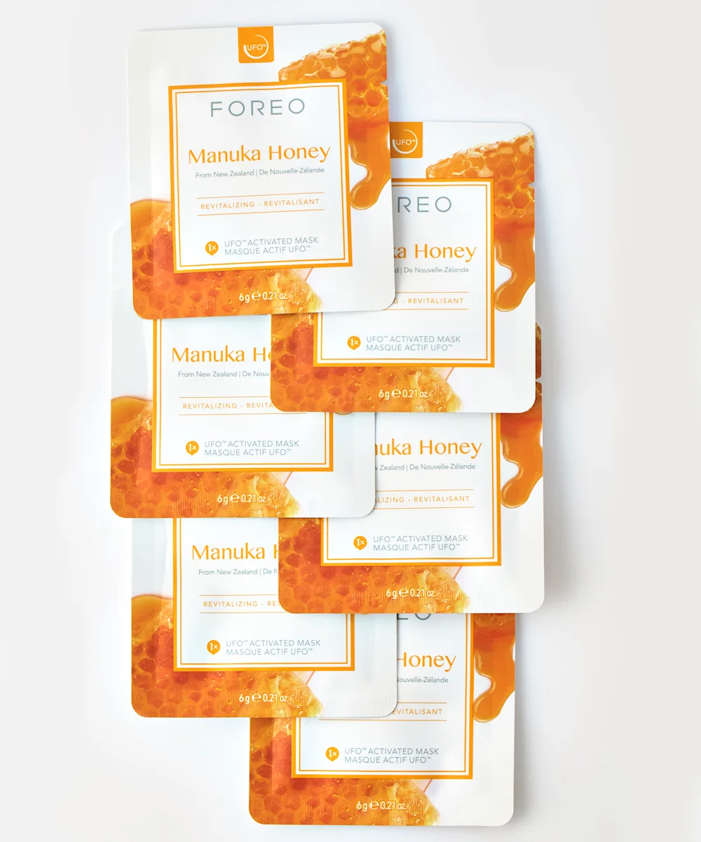 Nähre und revitalisiere deine Haut mit den Manuka Honey UFO/UFO Mini Revitalising Gesichtsmasken. Die sechs Wundermasken in dieser Packung lassen sich mit deinem Foreo UFO-Gerät kombinieren und bieten dir das ultimative Maskenerlebnis. Diese Masken sind mit Manukahonig angereichert, einem natürlichen Inhaltsstoff, der seit Jahrhunderten für die Hautpflege verwendet wird. Er macht die Haut weich, pflegt sie und trägt dazu bei, die Alterungserscheinungen zu reduzieren. Das Ergebnis? Eine superweiche und geschmeidige Haut.