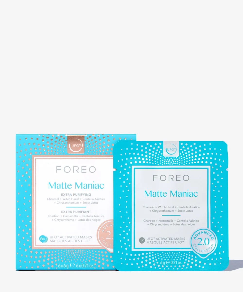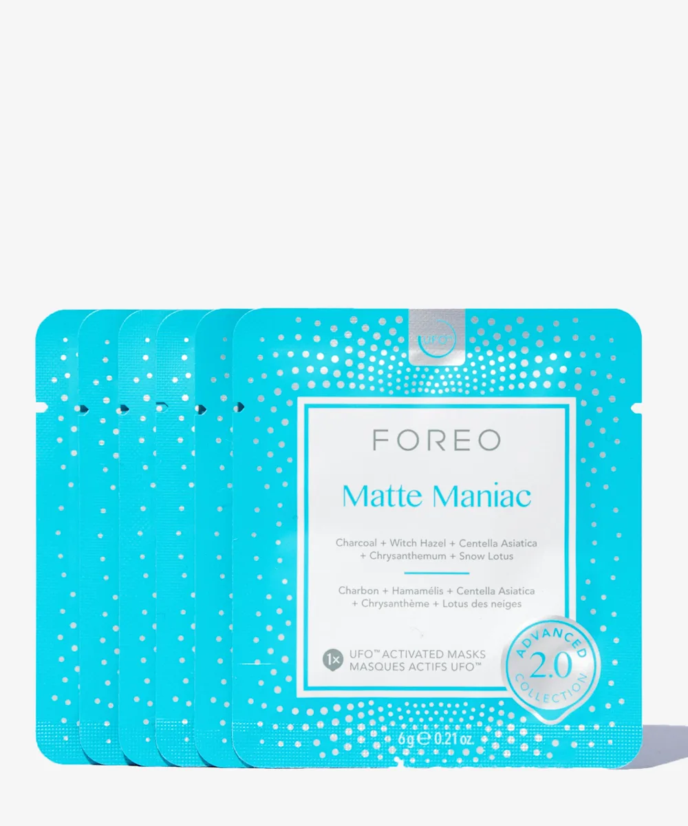 Alles klar? Aber ja – dank den Foreo UFO Masks Matte Maniac. Dieses Set mit sechs konzentrierten, ölfreien Serummasken passt perfekt zu deinem UFO-Gerät. Es klärt den Hautton sofort, entfernt Öl und minimiert Unreinheiten – für eine klare, gesund aussehende Haut. Jede Maske mit Aktivkohle hilft, Schmutz, Öl und Unreinheiten zu entfernen, während sie gleichzeitig sanft Giftstoffe abbaut.