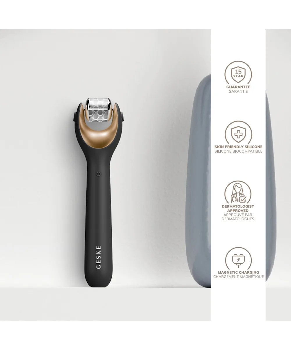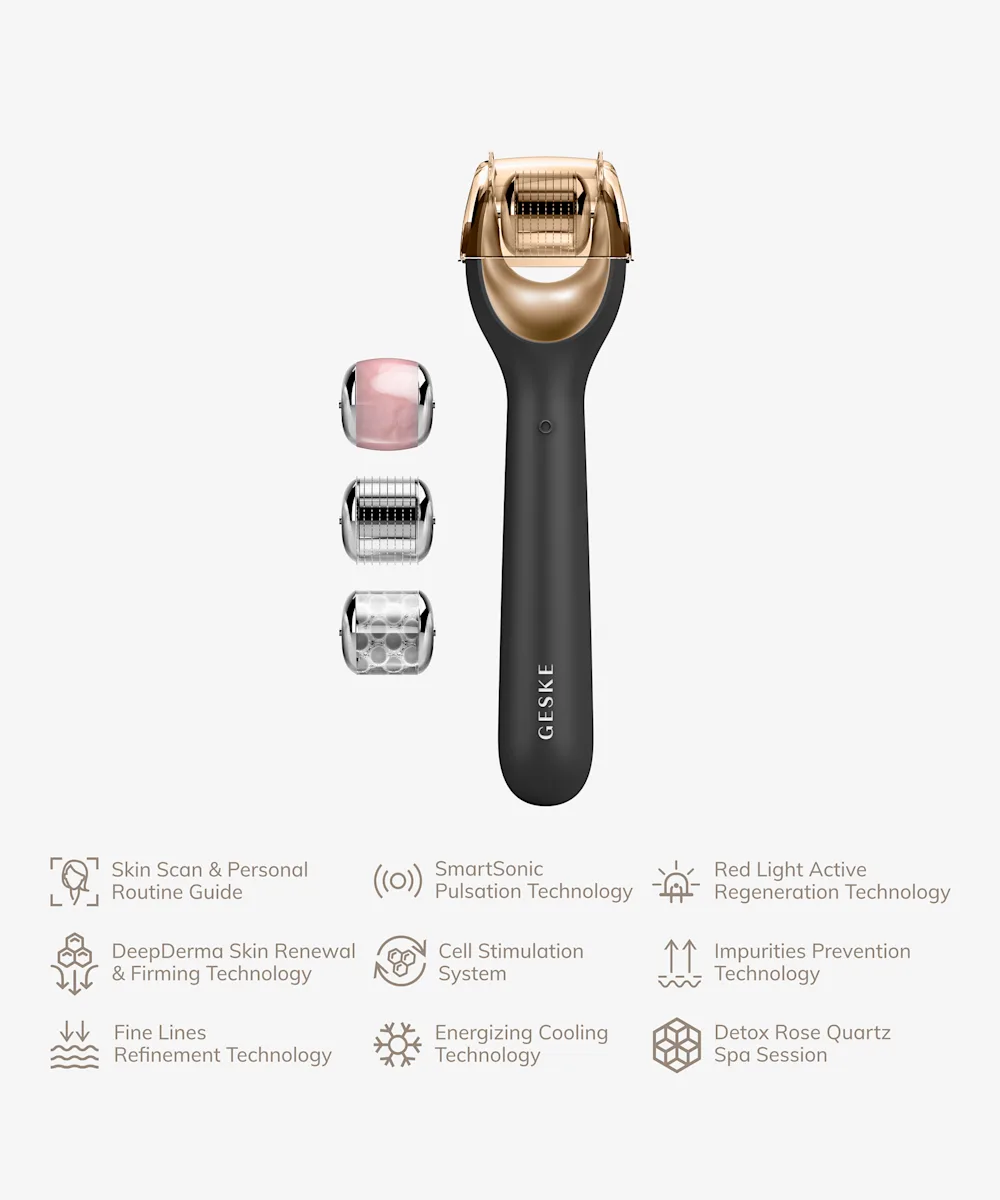 Stimulate and detoxify your skin with the GESKE MicroNeedling Facial Roller 9 in 1. Designed to make an impact in a matter of seconds, this microneedling device’s Cell Stimulation System functions as a signal to enhance the skin’s healing processes and restore itself for firmer and smoother skin. Combining DeepDerma Skin Renewal & Firming Technology with SmartSonic Pulsation Technology, this roller transmits 14, 000 sonic pulsations per minute to carefully eradicate dirt, oil, and makeup residue. With regular use, this device keeps the skin smooth and looking healthy with its Impurities Prevention and Fine Lines Refinement Technology.