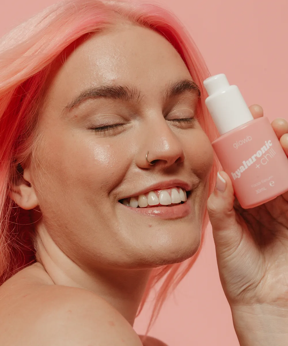 Hier kommt deine neueste Hautpflege-Obsession: Hyaluronic + Chill von Glowb. Das Serum enthält eine feuchtigkeitsspendende Mischung aus Hyaluronsäure, Niacinamid und Orangenblütenwasser und hilft, die Haut in einem einzigen Schritt zu pflegen, aufzuhellen und zu heilen. Hol sie dir jetzt – danken kannst du uns später.