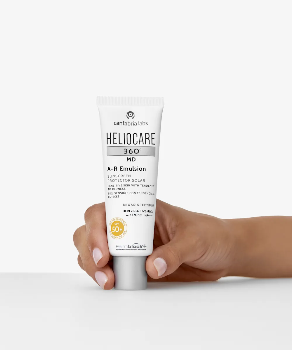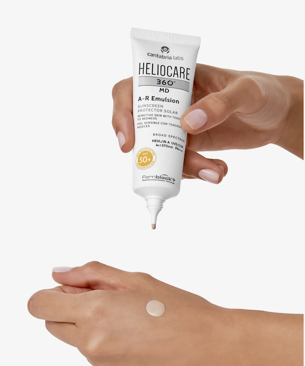 Schütze deine Haut vor schädlichen UV-Strahlen mit der Heliocare 360° A-R Emulsion mit LSF 50+. Dieses Fluid besteht aus einer Kombination von LSF 50 und PA++++ mit der einzigartigen Fernblock+®-Antioxidationstechnologie. Es bietet einen hohen UVA- und UVB-Breitspektrumschutz und verhindert und repariert dadurch gleichzeitig Schäden, die durch Tageslicht (einschließlich UVA, UVB, sichtbares Licht und Infrarot-A) und freie Umweltradikale entstehen. Dieses innovative Fluid ist ideal für empfindliche und atopische Hauttypen. Es verwendet ein Anti-Rötungssystem, um die Hautbarriere wiederherzustellen, Rötungen zu minimieren und die Haut zu beruhigen. Dieses leichte und seidige Fluid ist perfekt für deine Hautpflegeroutine. Es hinterlässt eine dezente Tönung auf der Haut, um Rötungen zu verwischen und die Strahlkraft zu verbessern.