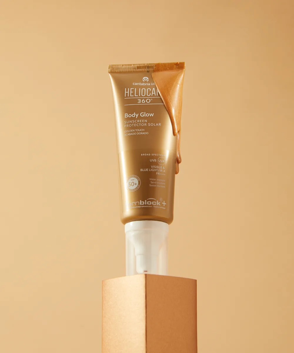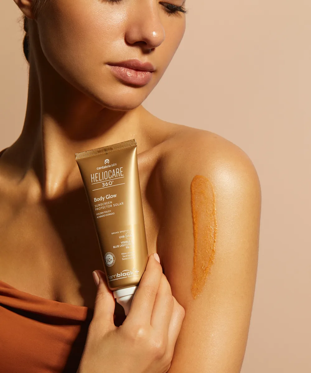Strahle und schütze deine Haut vor der Sonne mit dem Heliocare 360° Body Glow mit LSF 50+. Dieses Sonnenschutzmittel besteht aus einer Kombination von LSF 50 und PA++++ mit der einzigartigen Fernblock+®-Antioxidationstechnologie. Es bietet einen hohen UVA- und UVB-Breitspektrumschutz und verhindert und repariert dadurch gleichzeitig Schäden, die durch Tageslicht (einschließlich UVA, UVB, sichtbares Licht und Infrarot-A) und freie Umweltradikale entstehen. Diese wasser-, schweiß- und sandbeständige Formel hat eine ölähnliche Geltextur und zieht leicht in die Haut ein, ohne fettige Rückstände zu hinterlassen. Dank einer Mischung aus feuchtigkeitsspendenden Wirkstoffen und schimmernden Pigmenten ist dieses sensationell duftende Sonnenschutzmittel das Geheimrezept für eine gesunde, mit Feuchtigkeit versorgte und strahlende Haut mit einem goldfarbenen Schimmer.