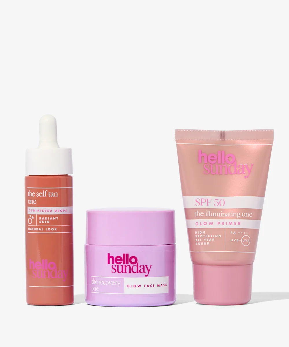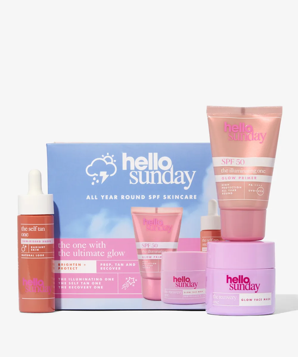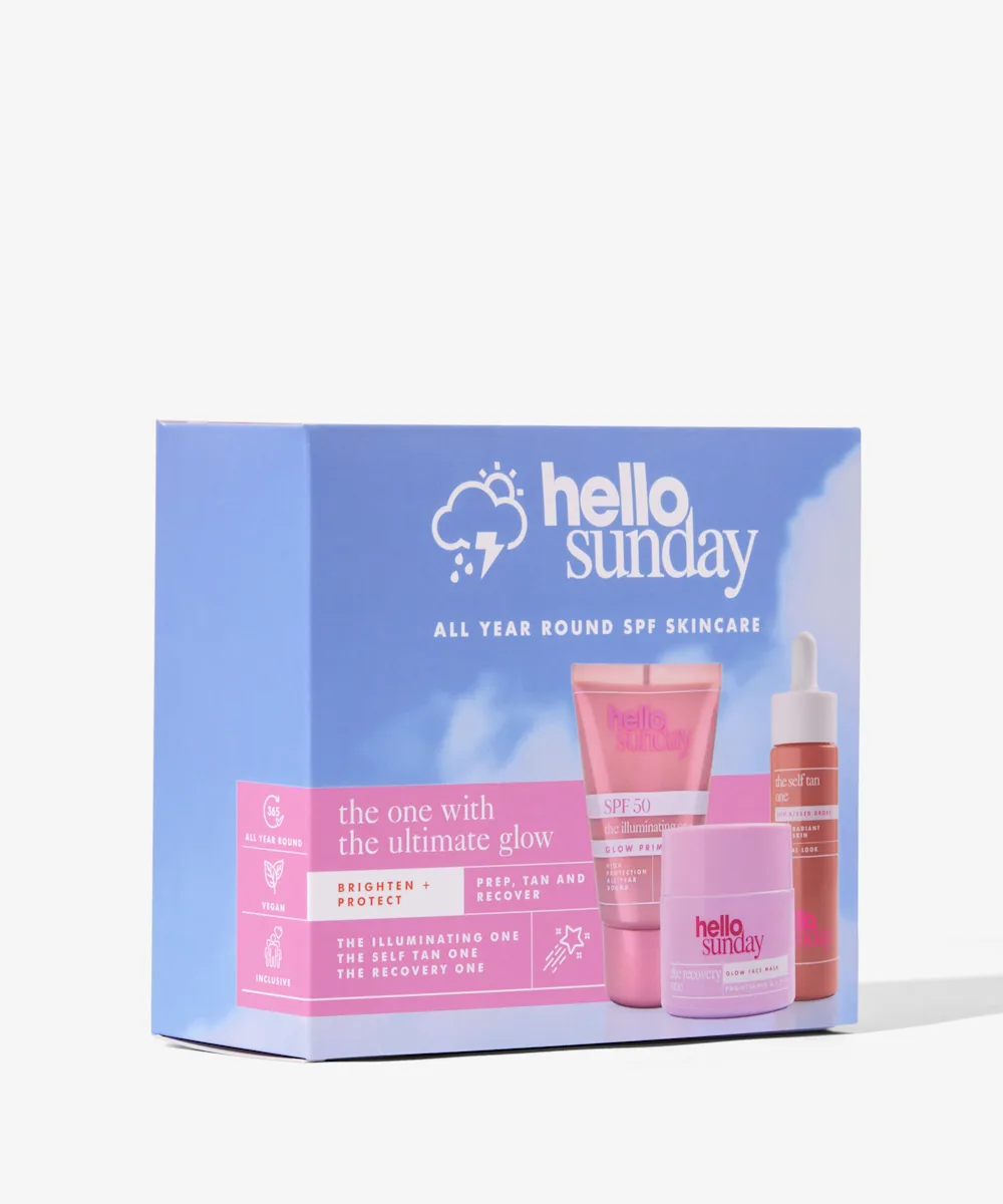Glow n go with The Ultimate Glow from Hello Sunday. Inside this set you’ll find a hydrating, SPF50, glowy primer, a bottle of customisable tanning drops, and a gel recovery face mask, so you can glow, tint and look after your skin.