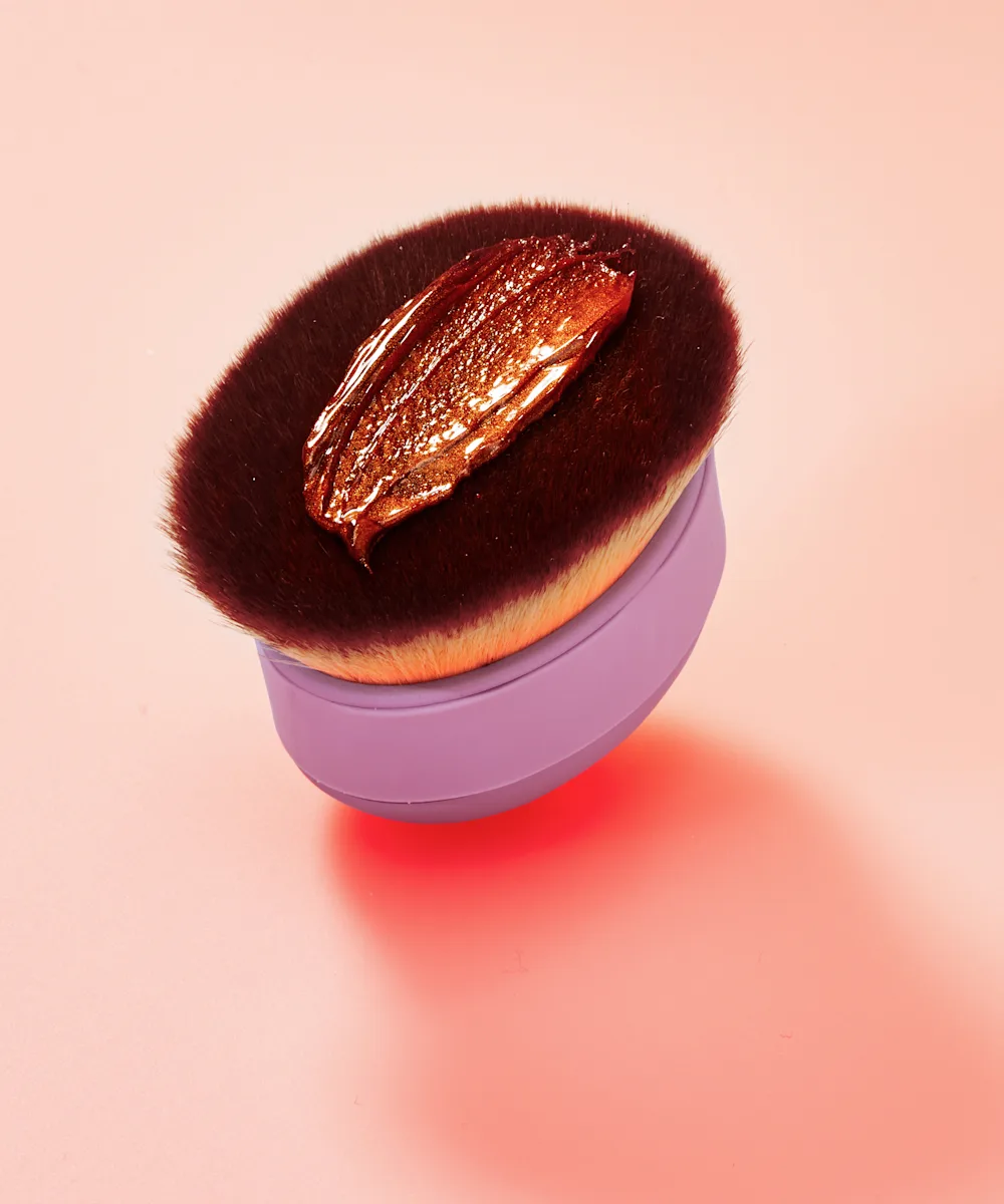 - Trage dein Selbstbräuner deiner Wahl mithilfe der Bürste mit kreisenden Bewegungen auf die Haut auf.