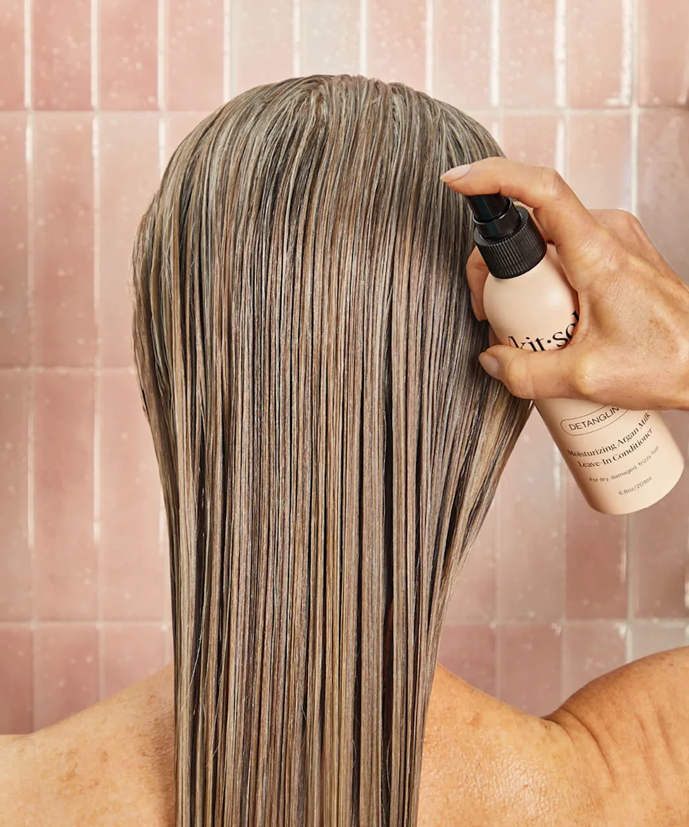 - Das Haar durchkämmen, um das Produkt gleichmäßig zu verteilen und das Haar für einen kräuselfreien Look sanft zu entwirren.