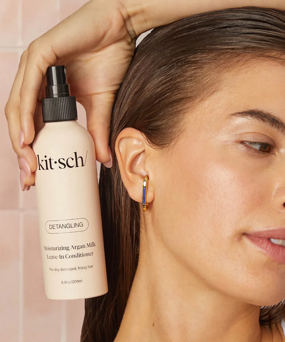 Pflege dein Haar und hinterlasse einen süßen Duft mit dem feuchtigkeitsspendenden Kitsch Leave-In-Conditioner mit Arganmilch. Dieser Leave-in-Conditioner revitalisiert dein Haar am zweiten Tag. Mit Murumuru-Samenbutter wird das Haar wieder weich und erhält einen schwerelosen Glanz. Eine Aminosäuremischung versorgt das nasse Haar mit Feuchtigkeit, um es zu zähmen und zu entwirren, während pflanzliches Actimilk™Argan das Haar nach bereits einer Stunde 35 % weicher macht. Dieser Leave-in-Conditioner verströmt einen köstlichen Duft nach Milch, Vanille und gerösteten Macadamianüssen.