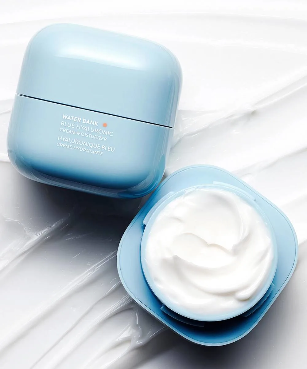 - Laneige Water Bank Blue Feuchtigkeitscreme mit Hyaluronsäure – eine reichhaltige, ultra-effiziente Feuchtigkeitscreme, die deine durch äußere Aggressoren und Austrocknung geschädigte Haut lindert.
