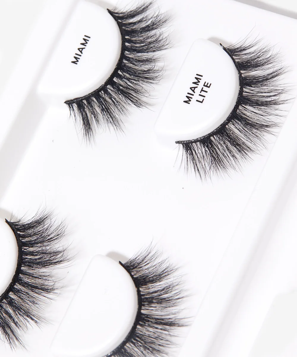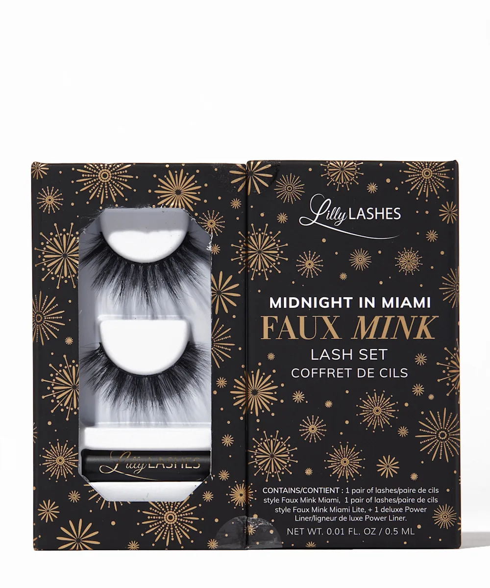 Das Midnight in Miami Faux Mink Lash Set von Lilly Lashes enthält zwei Sets mit perfekt geformten, natürlich aussehenden falschen Wimpern und einen schwarzen Eyeliner mit integriertem Wimpernkleber – wenn das mal keine neuen Lieblingswimpern sind. Die Wimpern wurden für die Verwendung mit dem Click Magnetic Liquid Eyeliner von Lilly Lashes entwickelt und enthalten 12 Mini-Magnete auf jedem Band, die das Auftragen der Wimpern für ein abgerundetes und voluminöses Finish super einfach machen.
