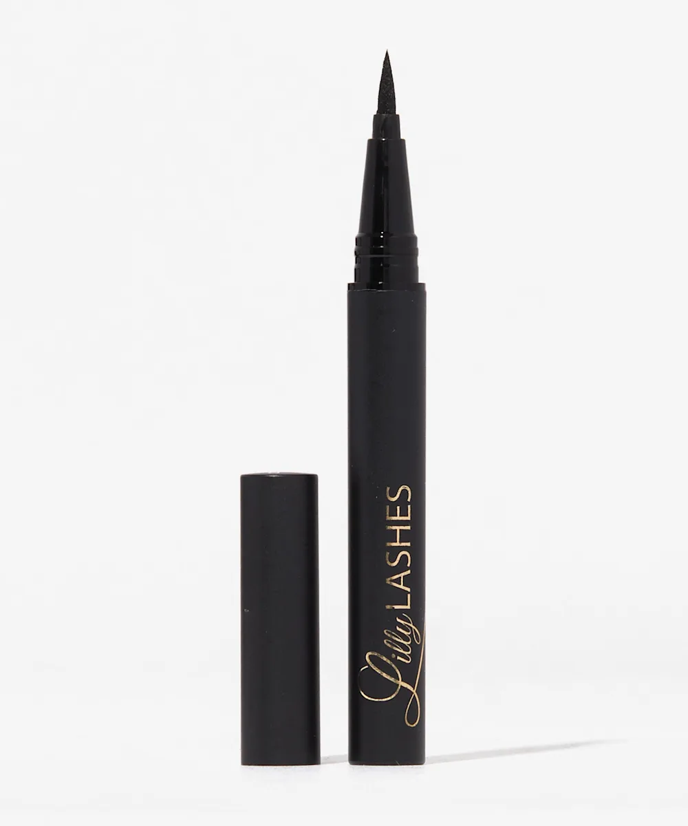 - Mit Lilly Lashes Power Liner und Wimpernkleber auftragen