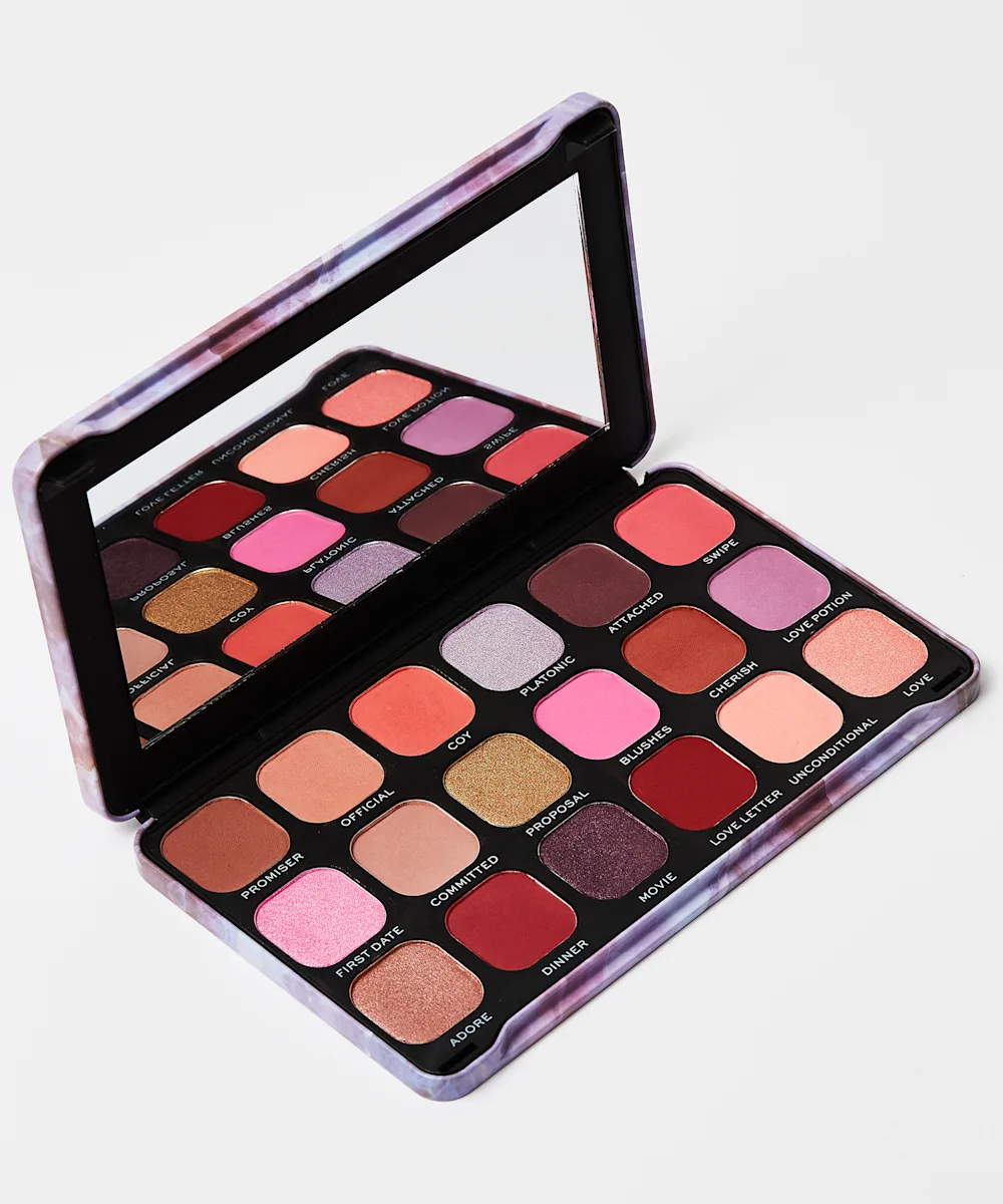 Entdecke deine romantische Seite mit Forever Flawless Unconditional Love von Revolution. Diese Kollektion strotzt nur so vor satten Lidschatten mit matten und schimmernden Farben und bietet eine ultra-pigmentierte, butterartige Formel für eine intensive Farbwiedergabe. Von dunklem Flieder bis zu tiefen Pflaumen- und Purpurtönen sind diese Lidschatten die erste Wahl, wenn es um die Kreation leidenschaftlicher Looks geht.
