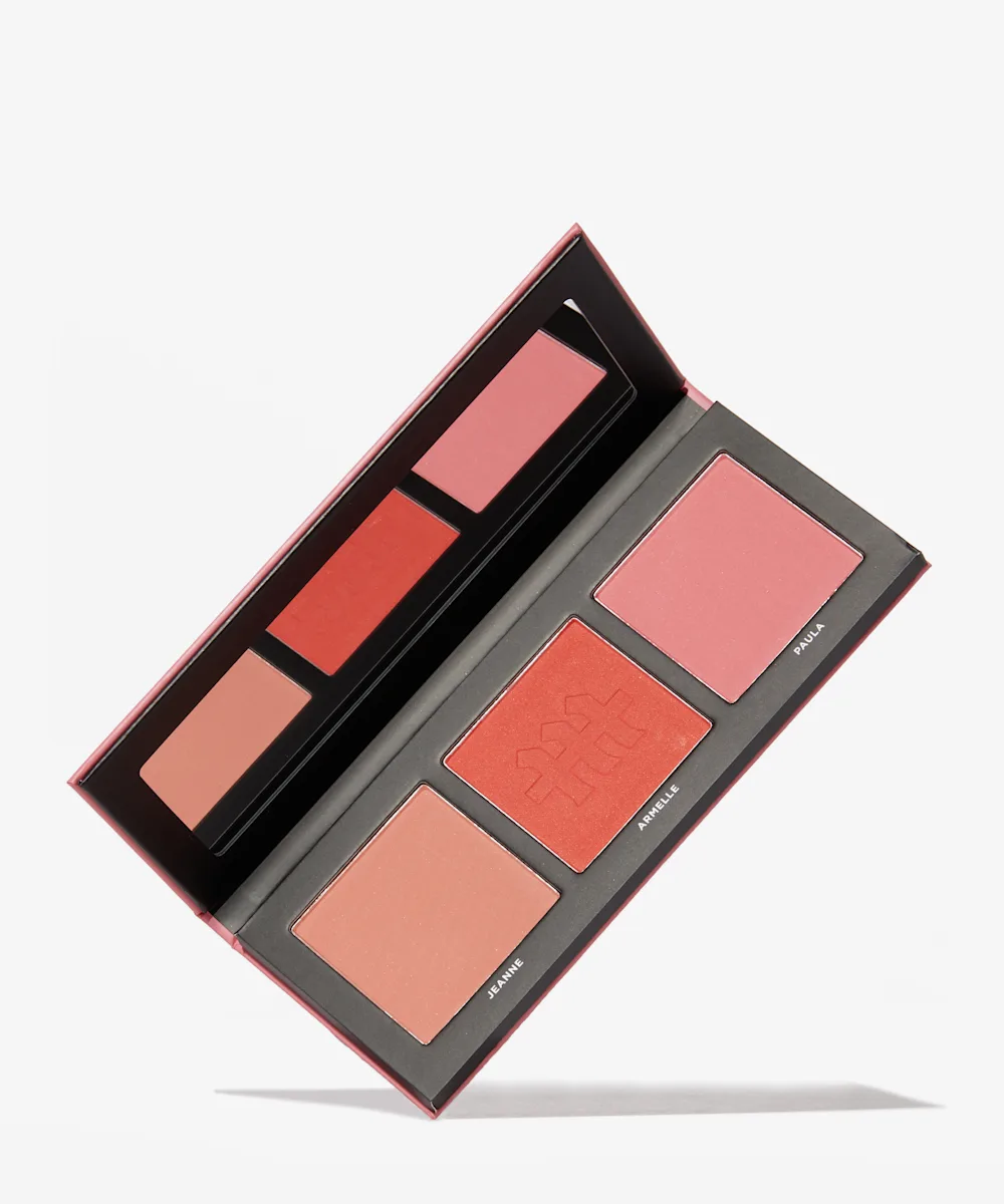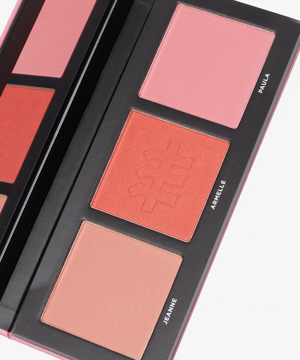 Jeanne : Talc, Mica, Zinc Stearate, Cetearyl Ethylhexanoate, Isononyl Isononanoate, Silica, Caprylyl Glycol Ethylhexylglycerin, Tin Oxide, Ci 77891 (Titanium Dioxide), Ci 77492 (Iron Oxides), Ci 15850 (Red 7 Lake), Ci 77491 (Iron Oxides), Ci 77007 (Ultramarines), Ci 45410 (Red 28 Lake), Ci 77499 (Iron Oxides) Armelle : Talc, Mica, Cetearyl Ethylhexanoate, Zinc Stearate, Silica, Caprylyl Glycol, Ethylhexylglycerin, Ci 77891 (Titanium Dioxide), Ci 15850 (Red 6), Ci 15850 (Red 7 Lake ), Ci 77491 (Iron Oxides), Ci 77499 (Iron Oxides) Paula : Synthetic Fluorphlogopite, Talc, Phenyl Trimethicone, Theobroma Grandiflorum Seed Butter, Boron Nitride, Silica, Mica, Caprylyl Glycol, Ethylhexylglycerin Mangifera Indica (Mango) Seed Butter, Theobroma Cacao (Cocoa) Seed Butter, Triethoxycaprylylsilane, Diethylhexyl Syringylidenemalonate, Zinc Oxide, Caprylyl Methicone, Caprylic/Capric Triglyceride, Tocopherol, Ci 77163 (Bismuth Oxychloride), Ci 77891 (Titanium Dioxide), Ci 15850 (Red 6), Ci 15850 (Red 7 Lake), Ci 19140 (Yellow 5 Lake)