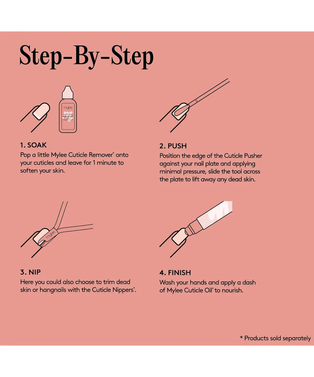 Definiere deine Nagelpflege-Routine mit dem Mylee Nagelhautschieber neu. Dieser doppelseitige Nagelhautschieber ist mit strapazierfähigem Edelstahl hergestellt und verfügt über ein gebogenes Ende, um die Nagelhaut effektiv zurückzudrücken, und eine Schaberseite, um Hautablagerungen zu entfernen. Er ist perfekt, um Ergebnisse wie im Nagelstudio zu Hause zu erzielen, also gehört dieser Nagelhautschieber in dein Nagelpflegeset.