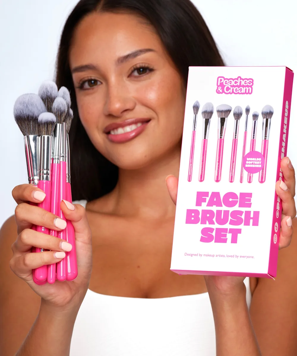 Create flawless and effortless makeup looks with the Peaches & Cream Essential Face Brush Set. Combining seven of their most popular face makeup brushes, this set offers amazing value for money and guarantees flawless and masterly face makeup that can help you to create fresh and dewy day time looks to full coverage and long-lasting makeovers. Including brushes for foundation, bronzer, blusher and highlighter, it has every base covered.