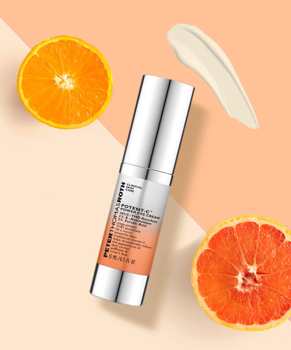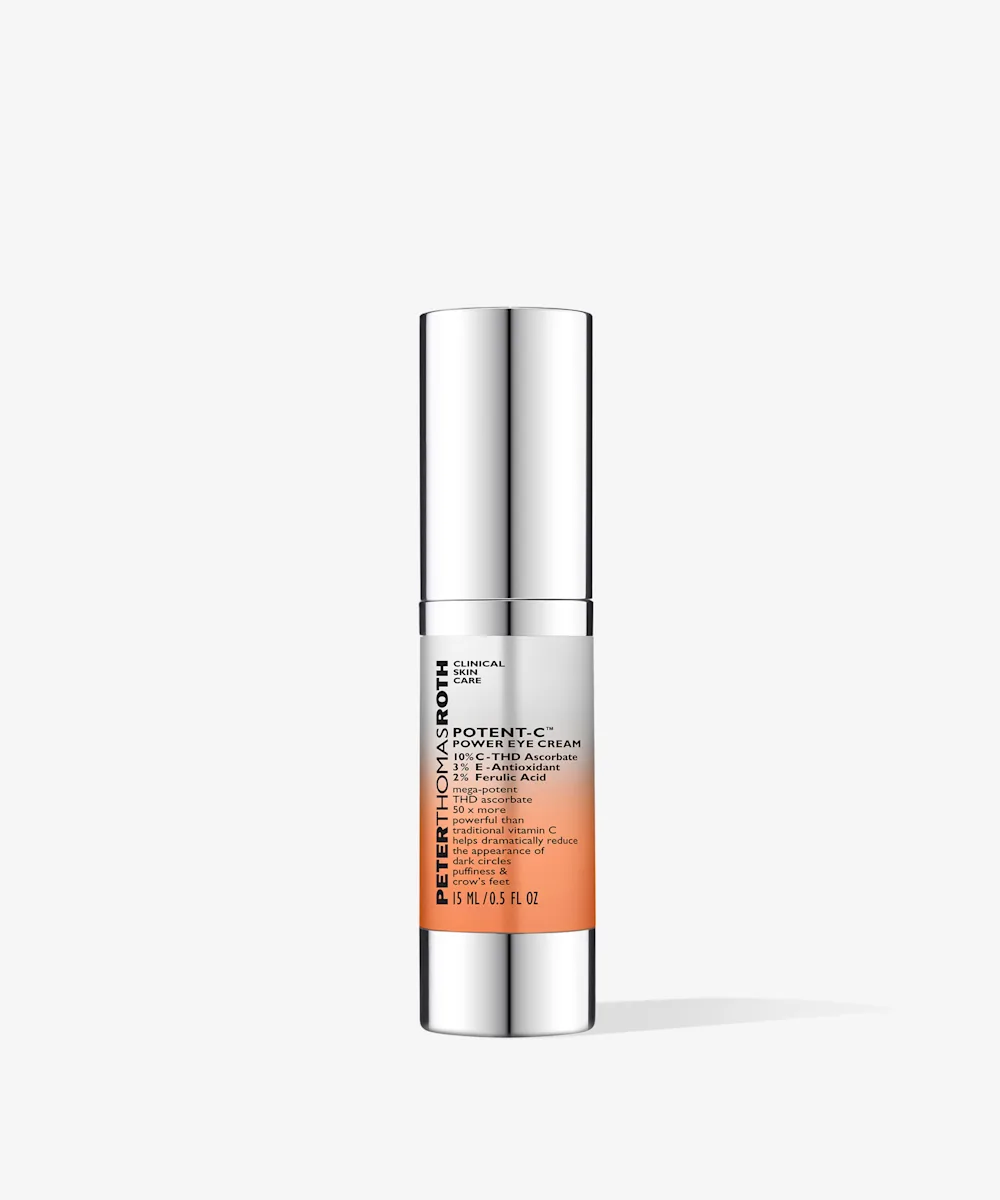 Beseitige Krähenfüße mit der PETER THOMAS ROTH Potent-C™ Power Augencreme. Formuliert mit einer Konzentration von 10 % THD Ascorbat Vitamin C, bereichert diese feuchtigkeitsspendende Augencreme die Haut mit der Kraft starker Antioxidantien. Eine Infusion aus Koffein, Hyaluronsäure und 3 % Phyco'derm ® verbessert das Aussehen von Augenringen, Schwellungen und Krähenfüßen sowohl sofort als auch im Laufe der Zeit bei regelmäßiger Anwendung.