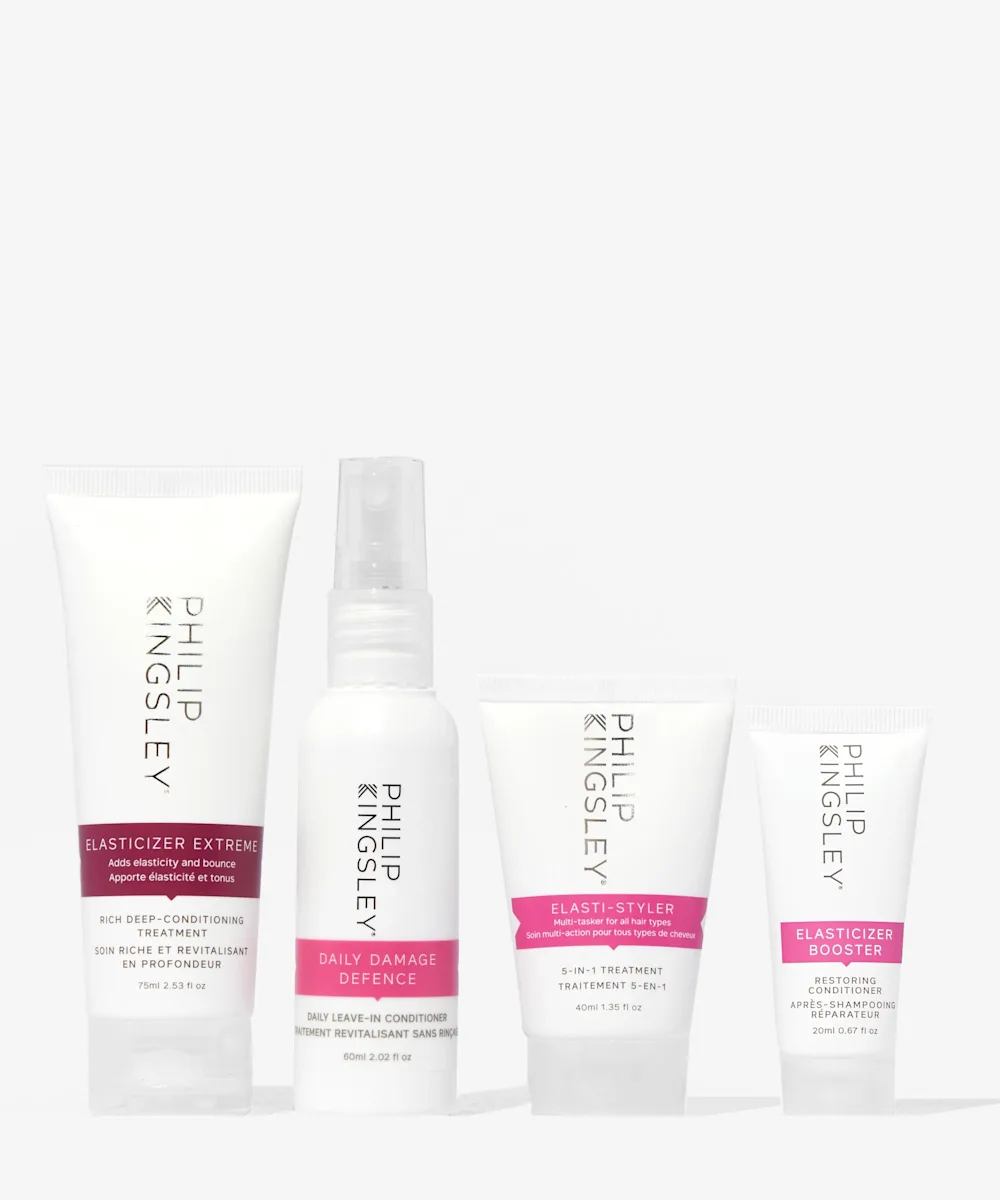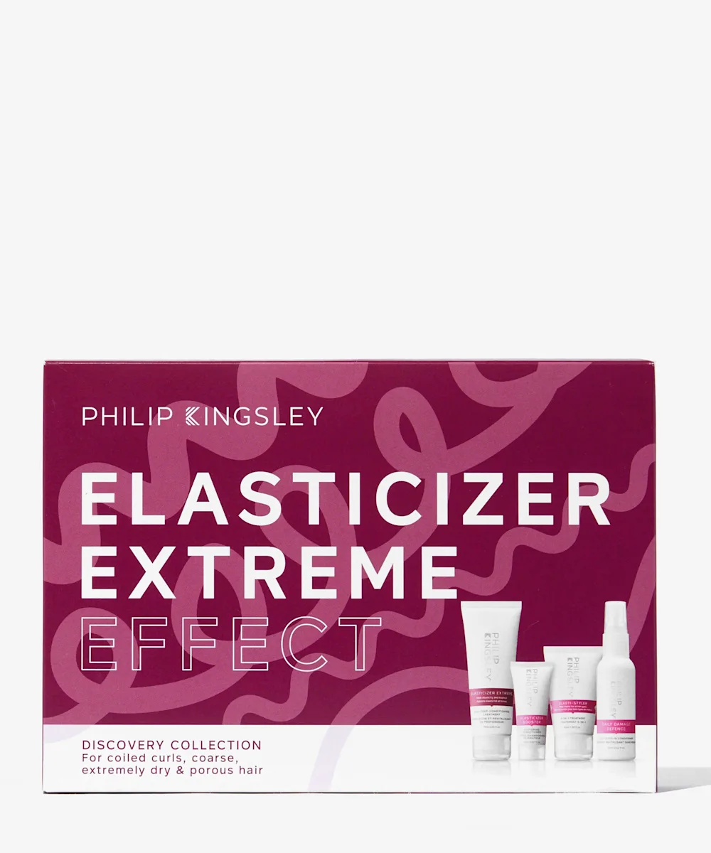 Die Philip Kingsley Elasticizer Extreme Effects Discovery Collection ist das ultimative Set zur Rettung von Haarsträhnen. Ein extrem nährendes Haarpflegeset auf der Basis von hydrolysiertem Elastin, das die Haarreparatur unterstützt und ideal für trockenes, geschädigtes, poröses und lockiges Haar ist oder einfach nur für diejenigen, die ein wenig Extra-TLC brauchen. Die bewährte Antwort auf trockenes Haar!