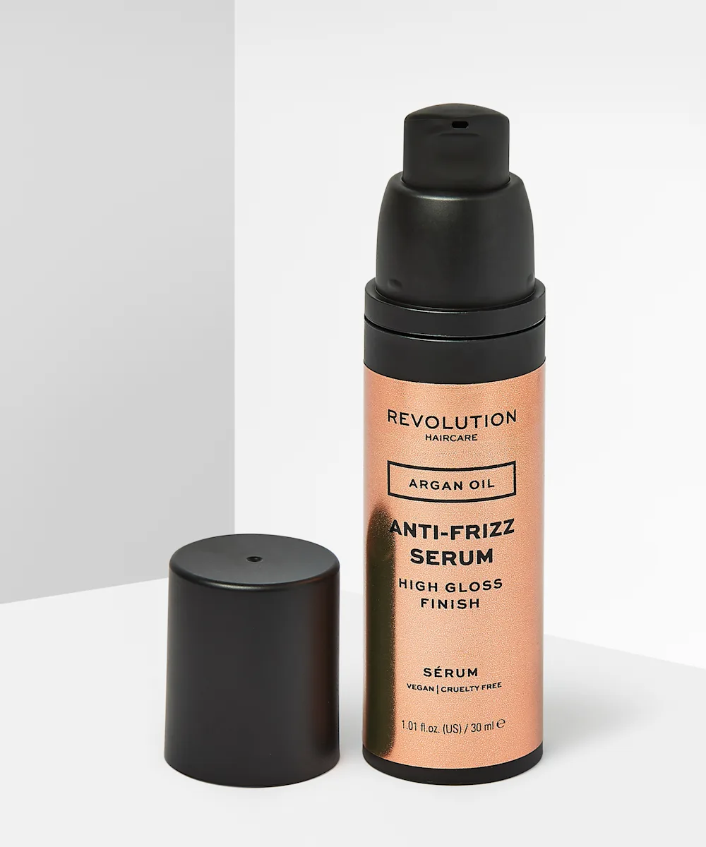 Das Glossy Shine Anti-Frizz-Serum von Revolution Hair bekämpft Frizz und verhilft deinen Haaren im Handumdrehen zu mehr Glanz. Das Serum mit pflegendem Arganöl schützt, glättet und bändigt Frizz und sorgt für einen glatten Look. Arganöl ist reich an antioxidativem Vitamin E und enthält Fettsäuren, die das Haar mit Feuchtigkeit versorgen und so Frizz vorbeugen. Für weicheres, seidigeres und glänzenderes Haar brauchst du das Glossy Shine Anti-Frizz Serum.