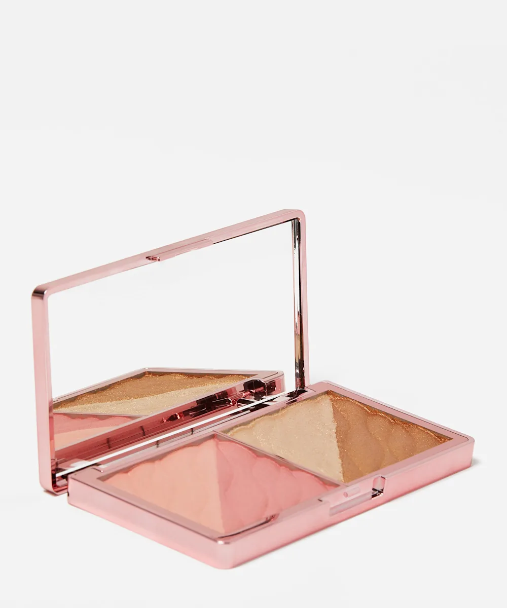 Eine Rouge- und Highlighter-Palette mit drei Farbtönen.
