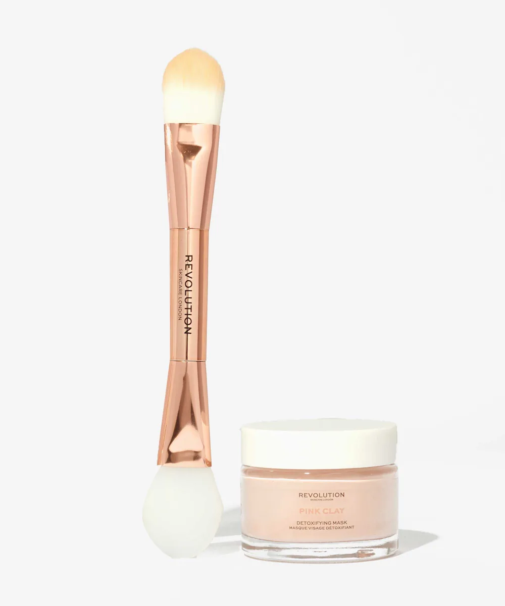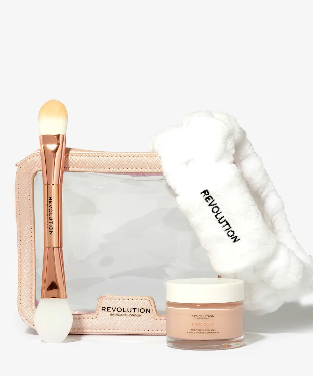 Leg einen Spa-Tag zu Hause ein - mit der Pink Clay-Kollektion von Revolution Skincare. Das Set enthält die Pink Clay Detoxifying Face Mask mit Kultstatus, ein Hautpflege-Haarband und einen doppelseitigen Maskenpinsel für müheloses Auftragen - alles in einer supersüßen, wiederverwendbaren Schminktasche.