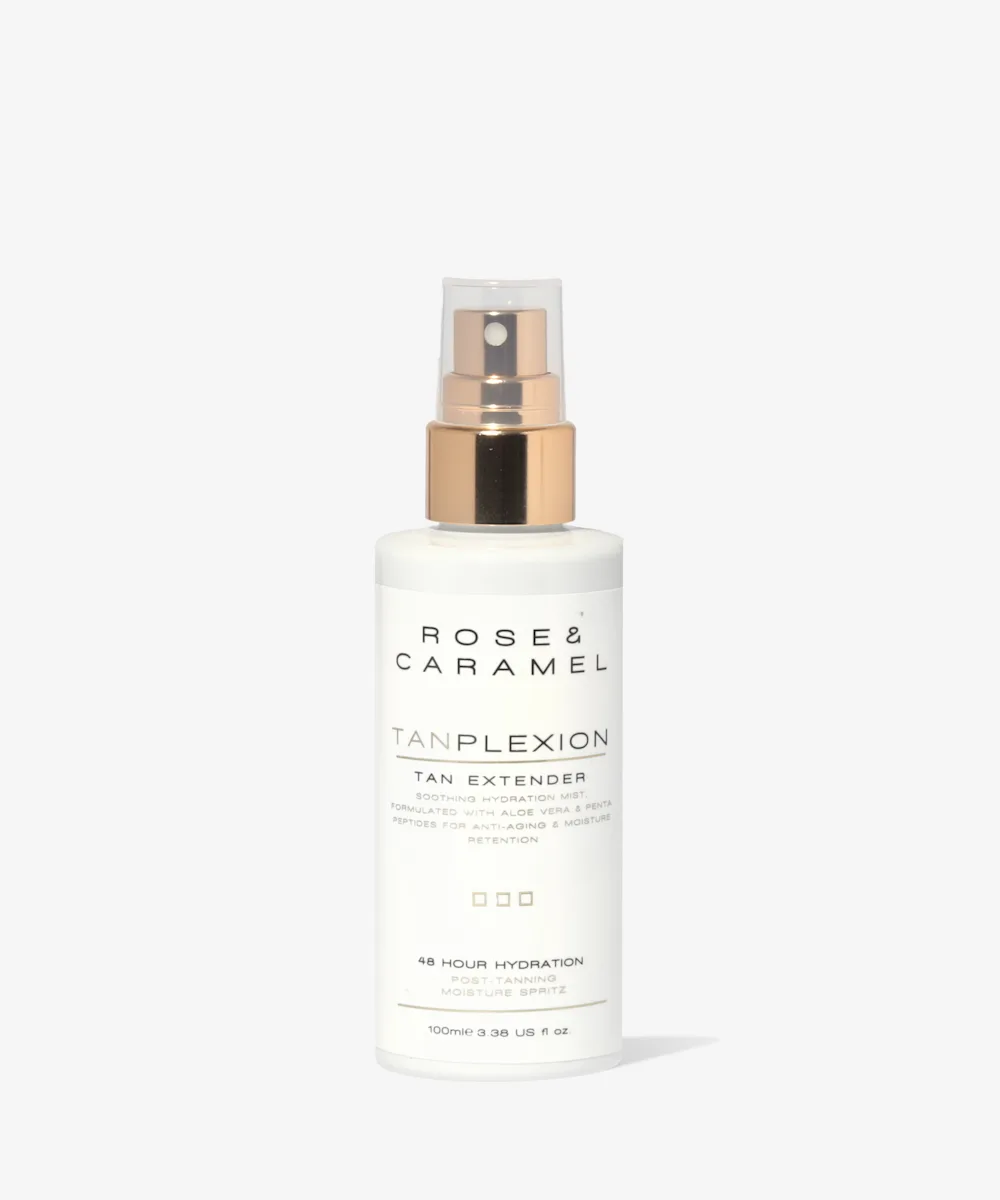 Keep your tan going and glowing with the Rose & Caramel Tanplexion Tan Extender. Perfect for preventing peeling after sun exposure, this skin-softening formula enhances elasticity revealing supple skin that holds its tan. Enriched with vitamin E and aloe vera, this tan extender absorbs quickly into the skin to deeply hydrate, soothe, and moisturise for up to 48 hours.