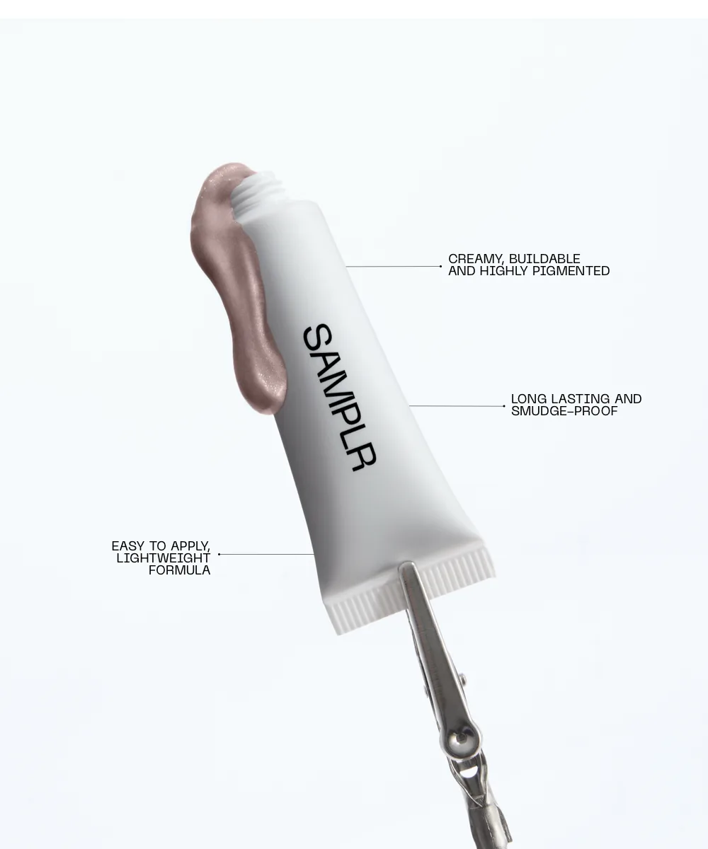 Play with shine and precision using the Samplr COLOUR_HIT #02_METALLIC. This lab-developed cream shadow delivers a high-impact metallic finish that catches every light, with buildable intensity to take you from subtle shimmer to full-on shine. The lightweight, creamy formula glides on effortlessly, blends seamlessly, and sets to a longwear finish that resists creasing and transfer. Designed to move with you, this eye paint is perfect for layering, amplifying, and elevating every look.