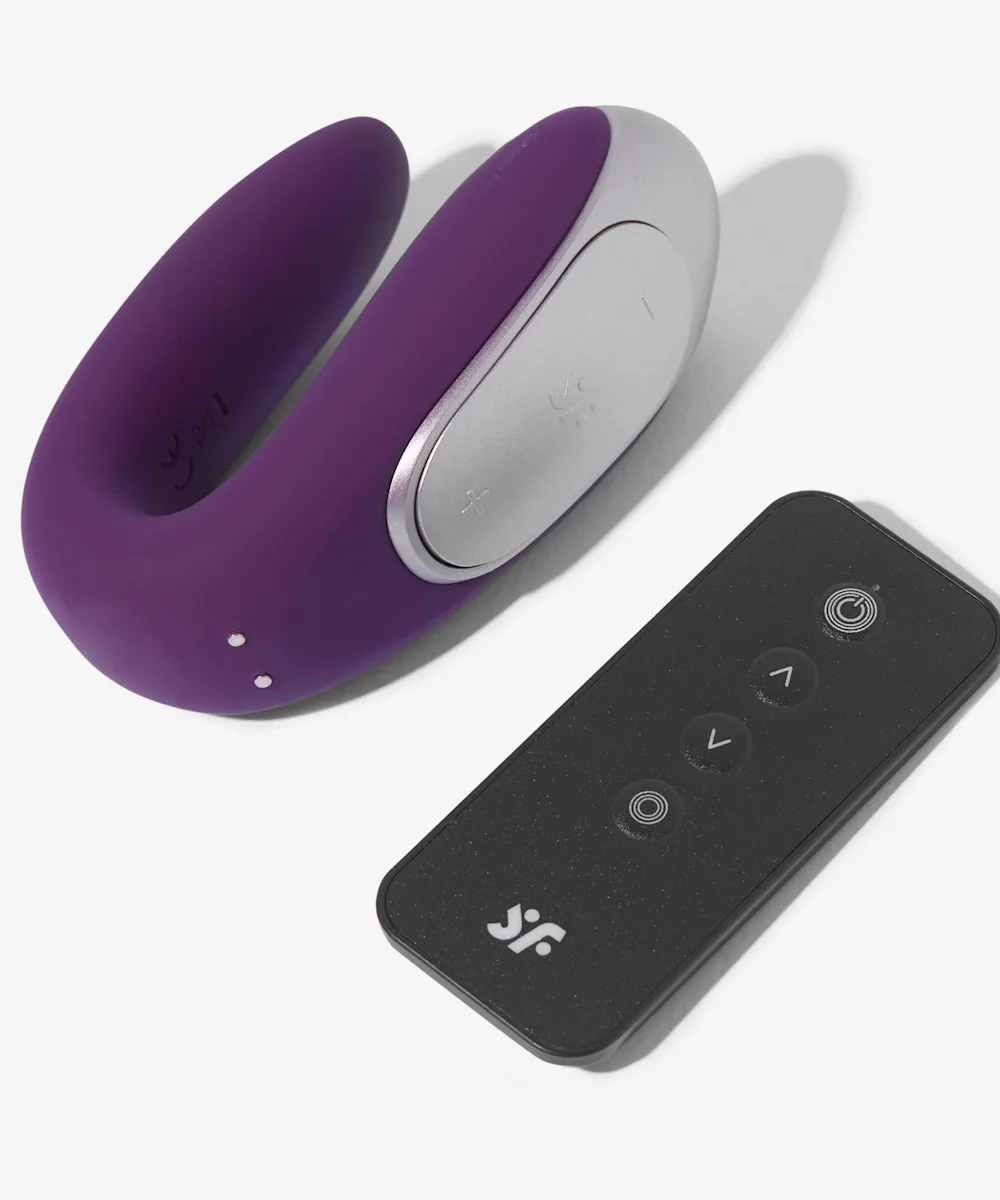 This U-shape vibrator has two motors which target the clitoris, G-spot, and penis, stimulating both partners during sex. The various vibration programs can be controlled via the control panel on the vibrator, via the included wireless remote control, or via the free Satisfyer Connect App.