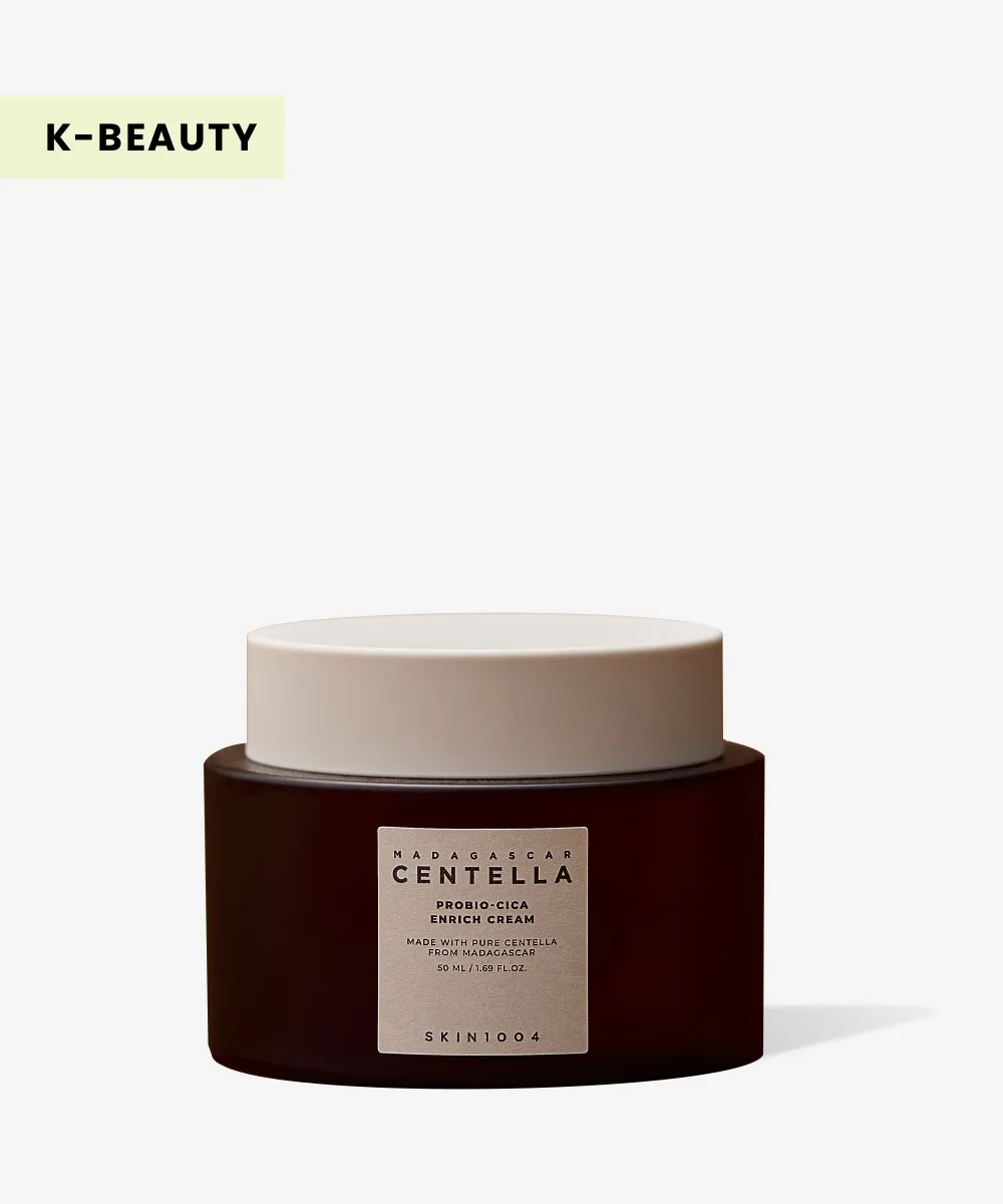 Beruhige deine Haut mit der SKIN1004 Madagaskar Centella Probio-Cica Enrich Creme. Diese Creme ist mit veganem ProBio-Cica formuliert, einer Mischung aus fermentiertem Centella und TECA Plus. Sie lindert Entzündungen und Reizungen, minimiert Rötungen, verhindert Feuchtigkeitsverlust und repariert Schäden. Macadamia ternifolia-Samenöl und Moringa oleifera-Samenöl versorgen die Haut intensiv mit Feuchtigkeit und Nährstoffen, während Lactobacillus die Hautbarriere stärkt und die Hautstruktur glättet und revitalisiert. Es ist klinisch erwiesen, dass diese hochwirksame Creme die Gesichtshaut (einschließlich Stirn, Kinn, Nase, Wangen und der empfindlichen Augen- und Mundpartie) glättet und spürbare Ergebnisse für eine geschützte und mit Feuchtigkeit versorgte Haut liefert.