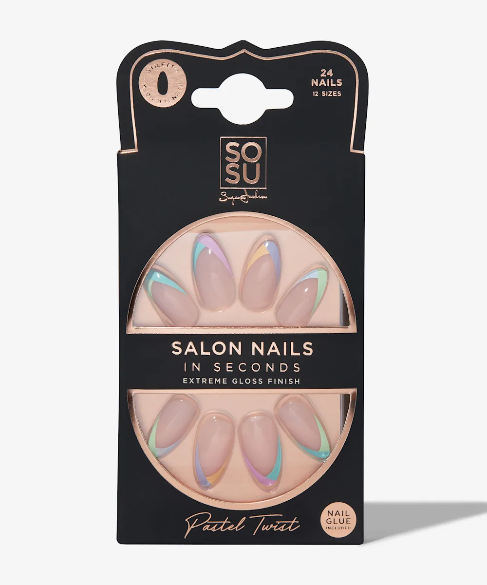 Bringe deine Nagellooks mit den Salon Nails von SOSU by Suzanne Jackson auf ein ganz neues Level. Diese frechen Designs sind unglaublich schmeichelhaft und passen zu jedem Look. Sie sind leicht zu applizieren sowie abzuziehen und sorgen so für eine salonreife Maniküre, ohne dass du das Haus verlassen musst.
