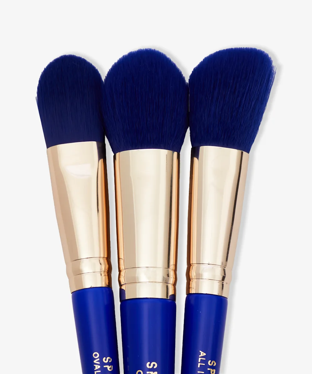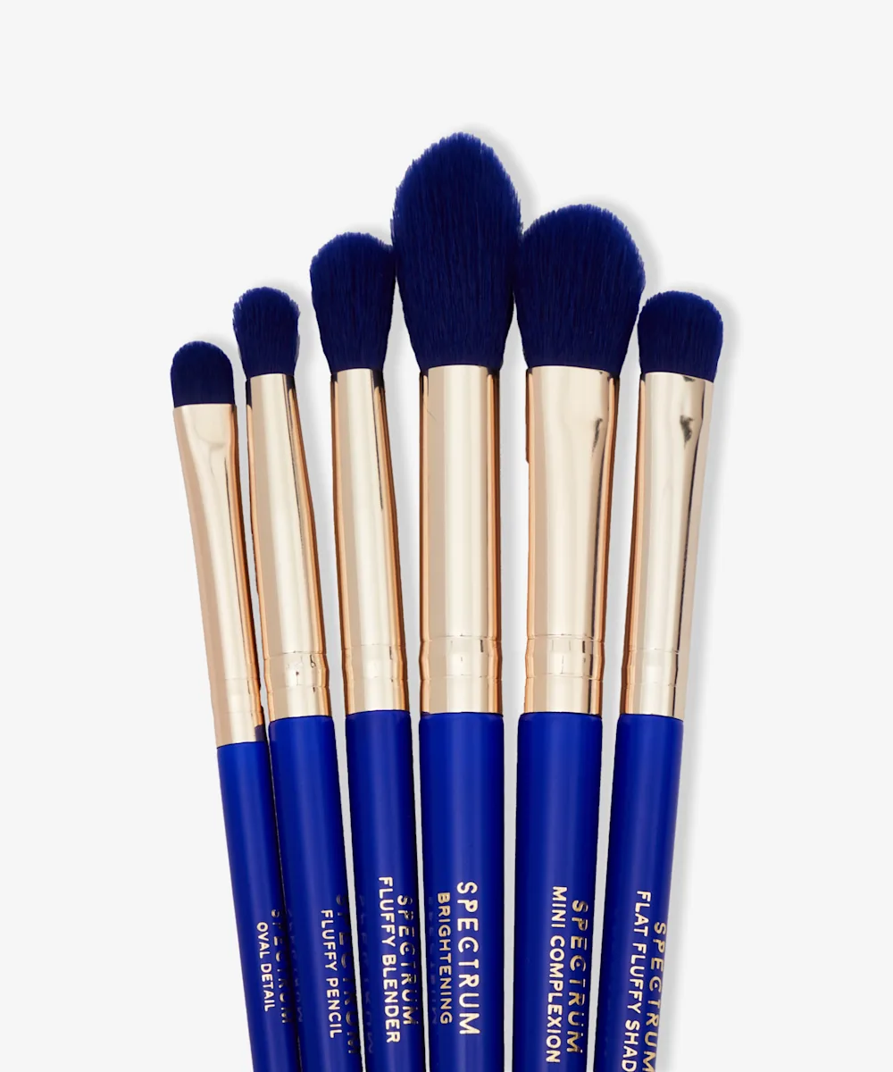 Genieße mit dem 10-teiligen Spectrum Collections Evil Eye Pinselset gute Laune bei jeder Make-up-Anwendung. Dieses blaue Pinselset mit goldenen Details und einem von den bösen Augen inspirierten Design enthält eine Auswahl an Teintpinseln, die ein müheloses Auftragen und eine nahtlose Verblendung von Foundation, Concealer, Wangen-, Puder-, Augen-, Lippen- und Augenbrauenprodukten ermöglichen.