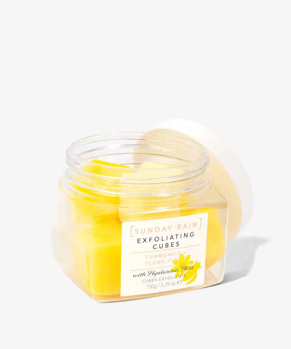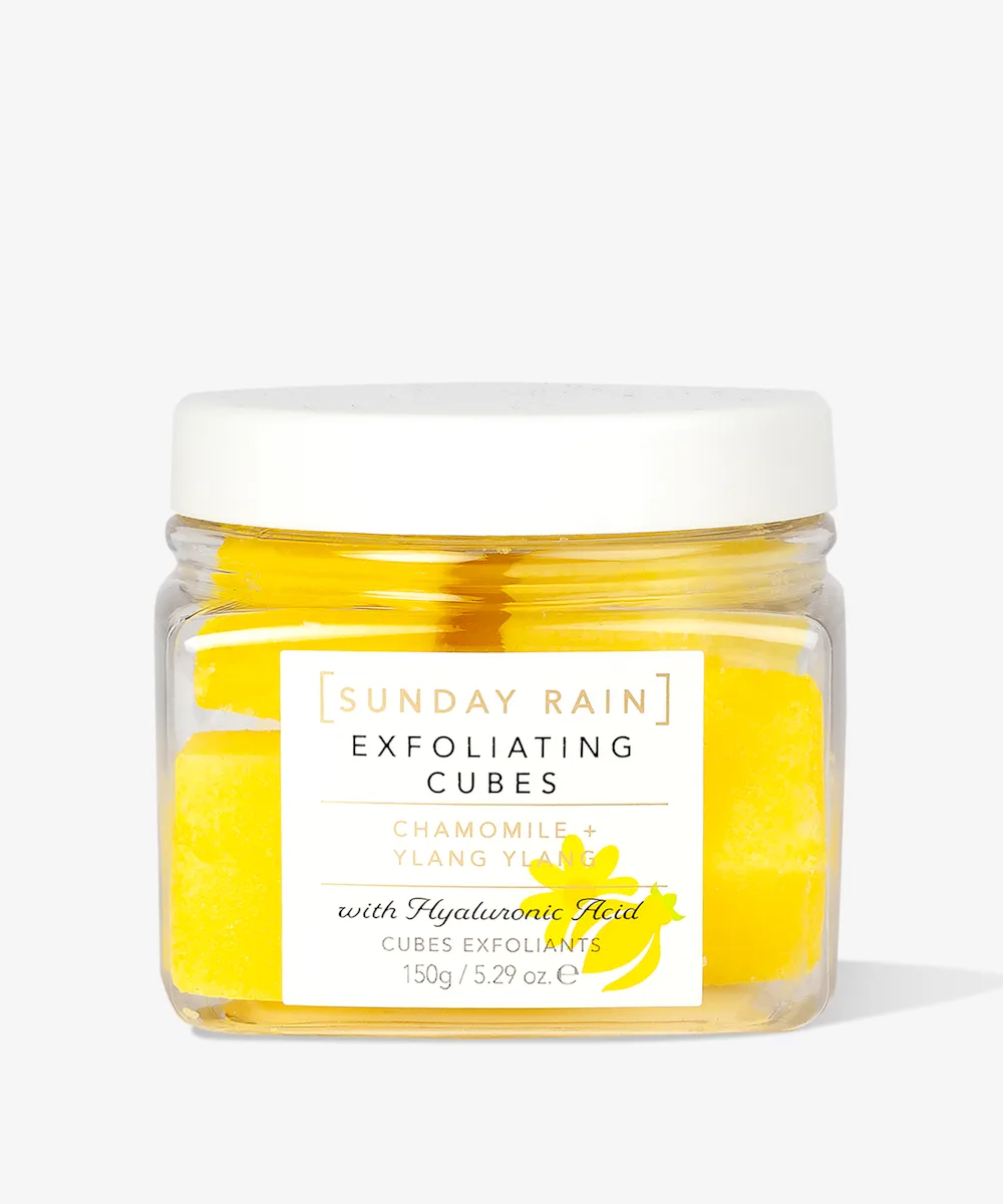 Glätte deine Haut mit den Kamille & Ylang Ylang Peelingwürfeln von Sunday Rain. Für die perfekte Peeling-Dosis werden diese revitalisierenden Peelingwürfel mit natürlichem Zucker, Hyaluronsäure, Kamillenöl und Ylang-Ylang-Öl formuliert, um die Haut sanft zu erneuern, weich zu machen, mit Feuchtigkeit zu versorgen und zu beruhigen. Eine Infusion mit Hyaluronsäure spendet reichhaltige Feuchtigkeit und hinterlässt eine schützende Schicht mit Nährstoffen auf der Haut, die sich daraufhin frisch und hydratiert anfühlt.