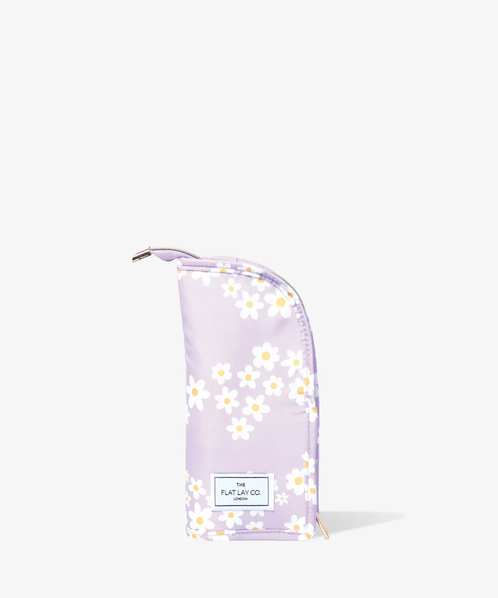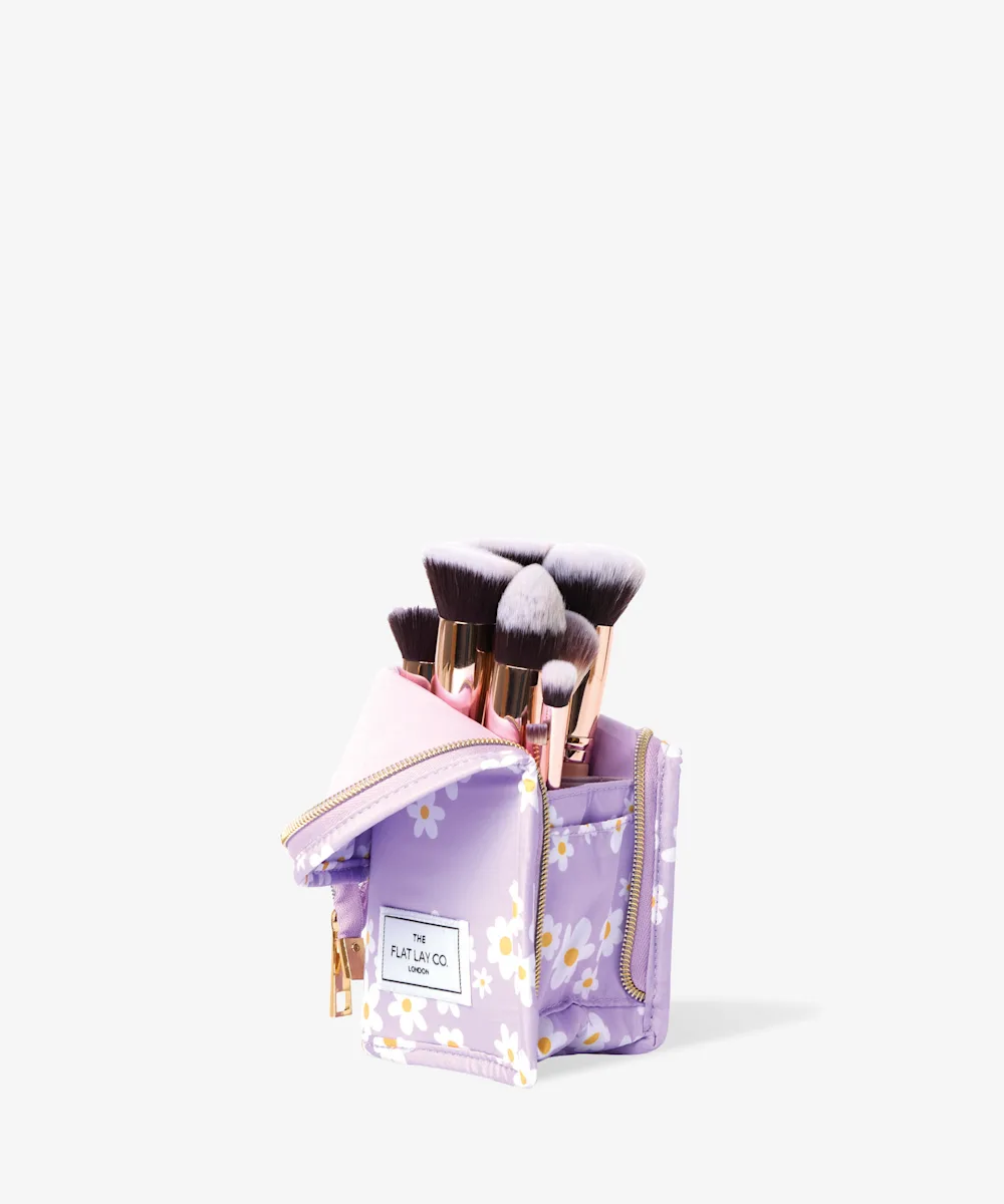 Bewahre deine Pinsel clever und stylish auf – in dem Pinseletui mit Stehfunktion von The Flat Lay Co. mit fliederfarbenem Gänseblümchendesign. Es ist ideal, um deine Pinsel vor Staub und Schmutz zu schützen und lässt sich zu einem Stehetui aufklappen, das dir einen einfachen Zugriff auf deine Make-up-Tools ermöglicht. Mit sechs elastischen Pinselhaltern und zwei kleinen Fächern hält es deine kleinen und großen Tools zuverlässig an Ort und Stelle. Dieses charmante Pinseletui mit fliederfarbenen Gänseblümchen und der dazugehörige Topf sind ein absolutes Muss, um deine wichtigsten Utensilien ordentlich zu verpacken und zu schützen.