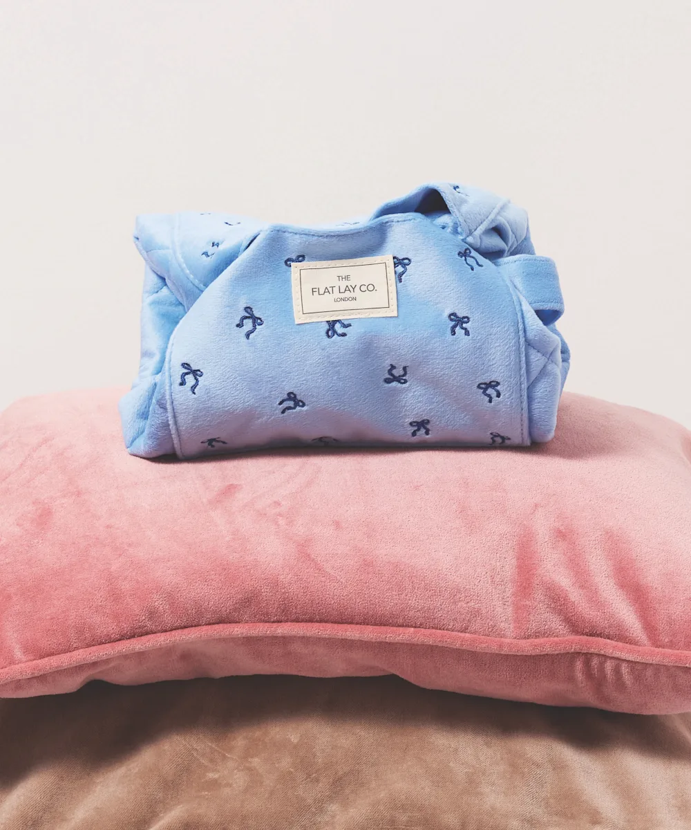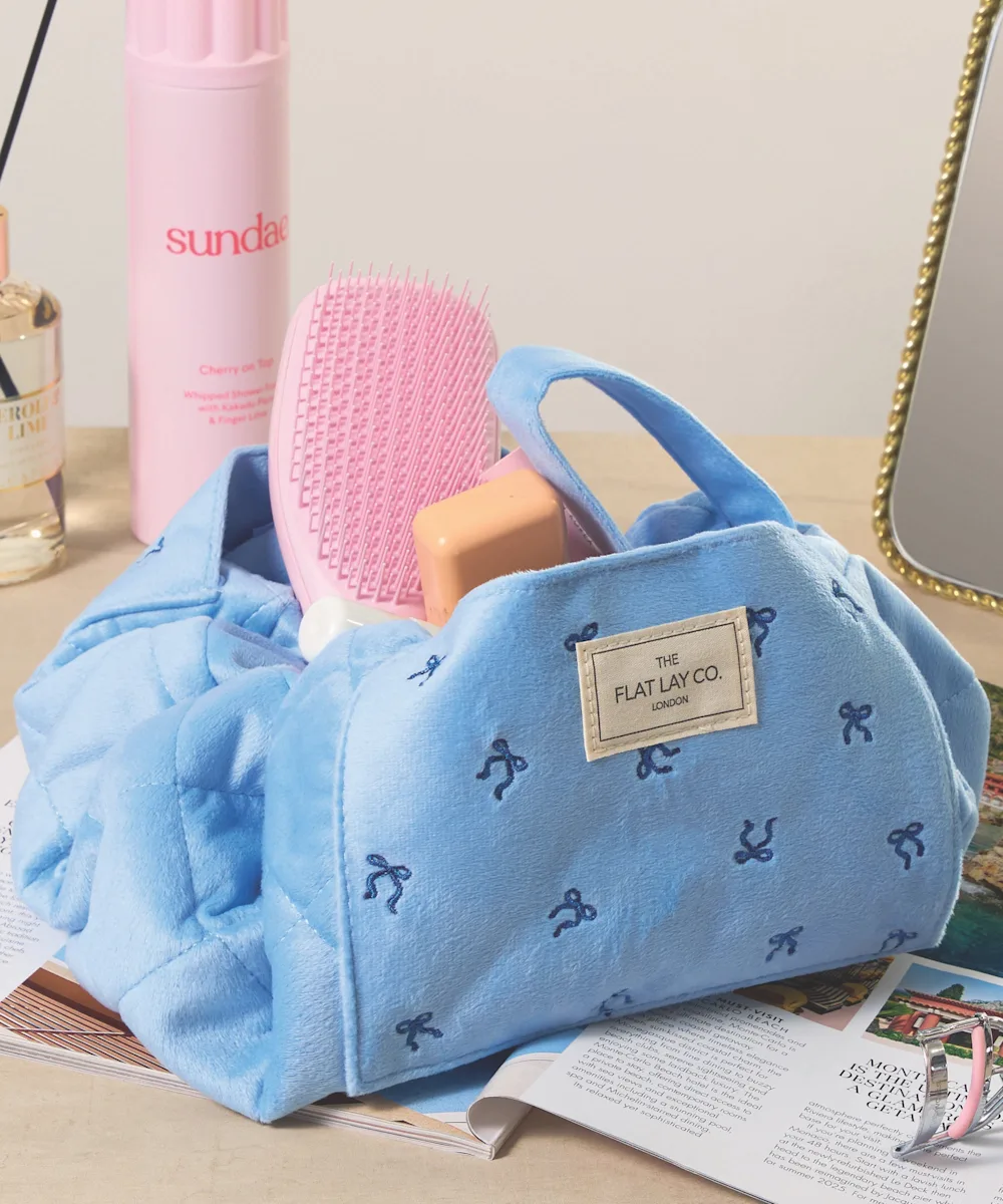Du suchst eine Kosmetiktasche mit einem kompakten Design, die gleichzeitig grenzenlosen Stauraum bietet? Die kastige Kosmetiktasche von The Flat Lay Co aus blauem Samt mit Schleifchenstickerei ist ein absolutes Must-have. Sie wurde speziell entwickelt, damit du dein Make-up leichter findest. Dazu lässt sie sich auseinanderfalten und flach ausbreiten, um den Blick auf alle deine Kosmetik-Must-haves freizugeben. Die zeitsparende und praktische Kosmetiktasche ist ideal, um Essentials wie Schmuck, Haar-Accessoires, Hautpflegeprodukte sowie Make-up-Pinsel und -Schwämme sicher aufzubewahren. Mit einer Reißverschlusstasche für kleinere Produkte und zwei äußeren Klettverschlussfächern für größere Produkte ist sie ideal für unterwegs. Stylisch, extrem praktisch und aus superweichem Material – ein absolutes Must-have.
