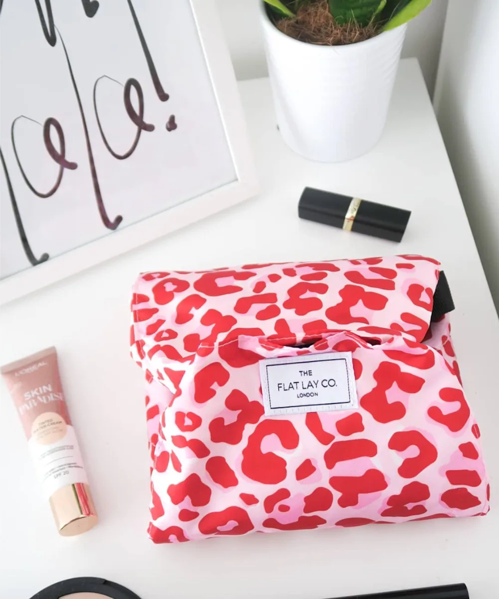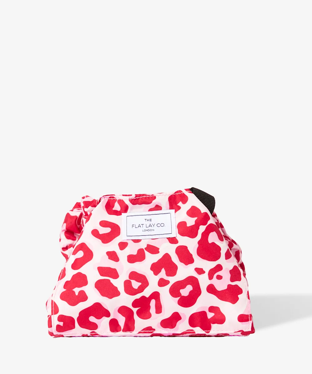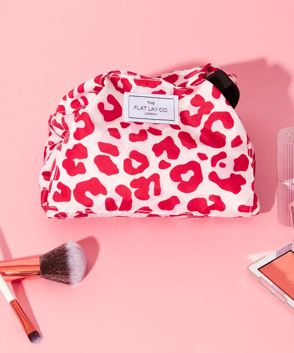Du suchst eine Kosmetiktasche mit einem kompaktem Design, die gleichzeitig grenzenlosen Stauraum bietet? Dann brauchst du die Schminktasche von The Flat Lay Co. mit Kordelzug und rosafarbenem Leopardenprint. Sie wurde speziell entwickelt, damit du dein Make-up leichter findest. Dazu lässt sie sich auseinanderfalten und flach ausbreiten, um den Blick auf alle deine Kosmetik-Must-haves freizugeben. Die zeitsparende und praktische Schminktasche ist ideal, um Essentials wie Schmuck, Haar-Accessoires, Haut- und Körperpflegeprodukte sowie Make-up-Pinsel und -Schwämme sicher aufzubewahren. Mit einer Reißverschlusstasche für kleinere Produkte und zwei äußeren Klettverschlussfächern für größere Produkte ist sie ideal für einen glamourösen Look. Stylish, extrem praktisch und mit einem rosafarbenen Leopardenprint – ein absolutes Must-have.
