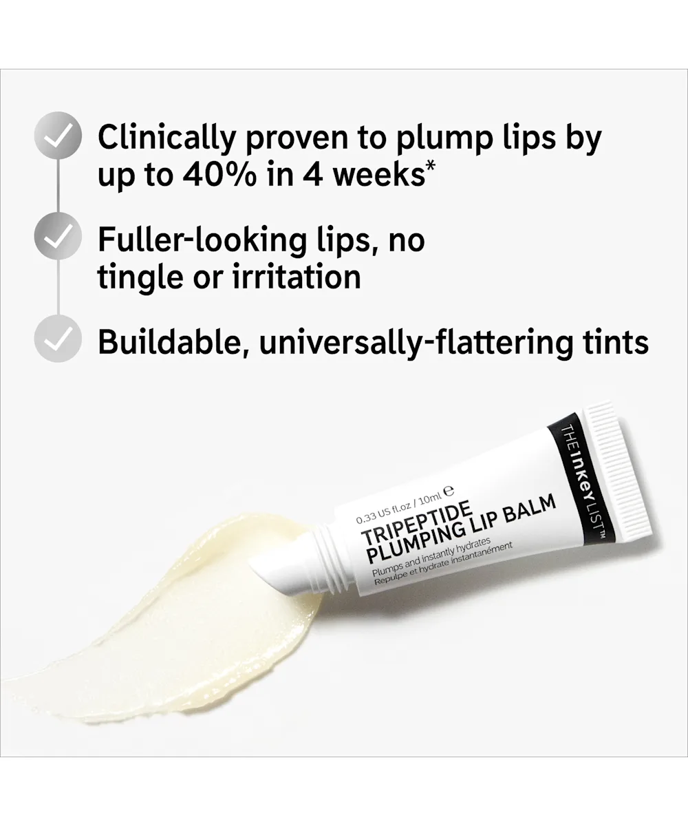 Erlebe die Party-Saison mit dem aufpolsternden Tripeptid-Lippenbalsam von The INKEY List sowohl in Transparent als auch in der neuen Maulbeertönung in limitierter Auflage. Erwiesenermaßen polstert dieser Lippenbalsam deine Lippen in vier Wochen um bis zu 40 % sichtbar auf. Das Ergebnis ist ein mit Feuchtigkeit versorgter praller Kussmund ohne Kribbelgefühl. Clear verleiht deinen Lippen ein natürliches Finish, während der neue Farbton Mulberry einen schmeichelnden pflaumenfarbenen Glanz für die perfekte Abendpracht hinterlässt.