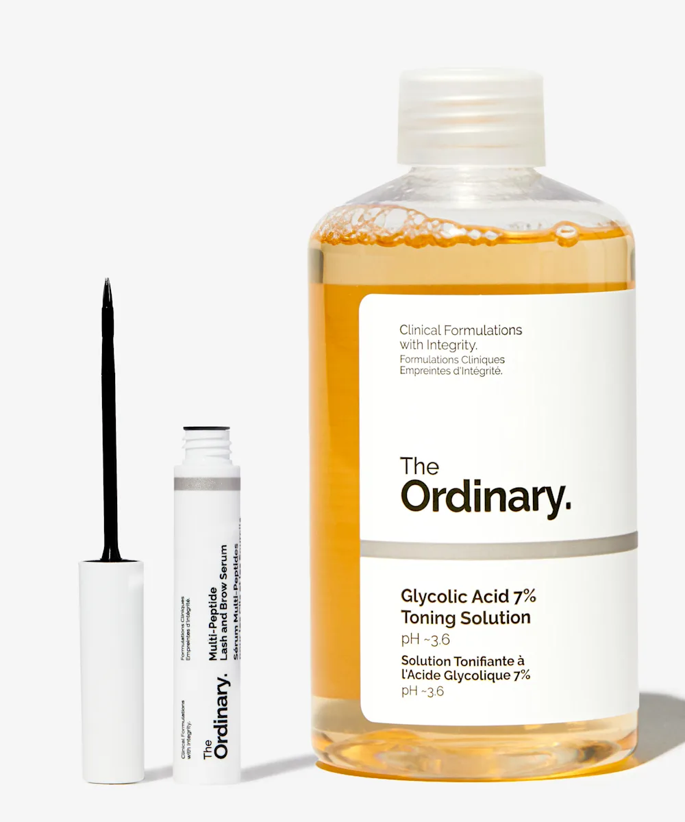 Mit dem Multi-Peptide Lash & Brow + Glycolic Acid Duo von The Ordinary kannst du dich über dichtere, vollere und gesünder aussehende Augenbrauen und Wimpern freuen, während deine Haut gleichzeitig strahlend und gepflegt aussieht. Das Duo enthält ein Serum, das Augenbrauen und Wimpern verdichtet, und mit 11 Wirkstoffen angereichert ist, um deine Haare zu pflegen, zu schützen und ihre Dichte langfristig zu optimieren. Außerdem findest du darin einen sanften Peeling-Toner, der mit Glykolsäure angereichert ist, um die Haut aufzuhellen, zu straffen und die Hautstruktur zu verfeinern.