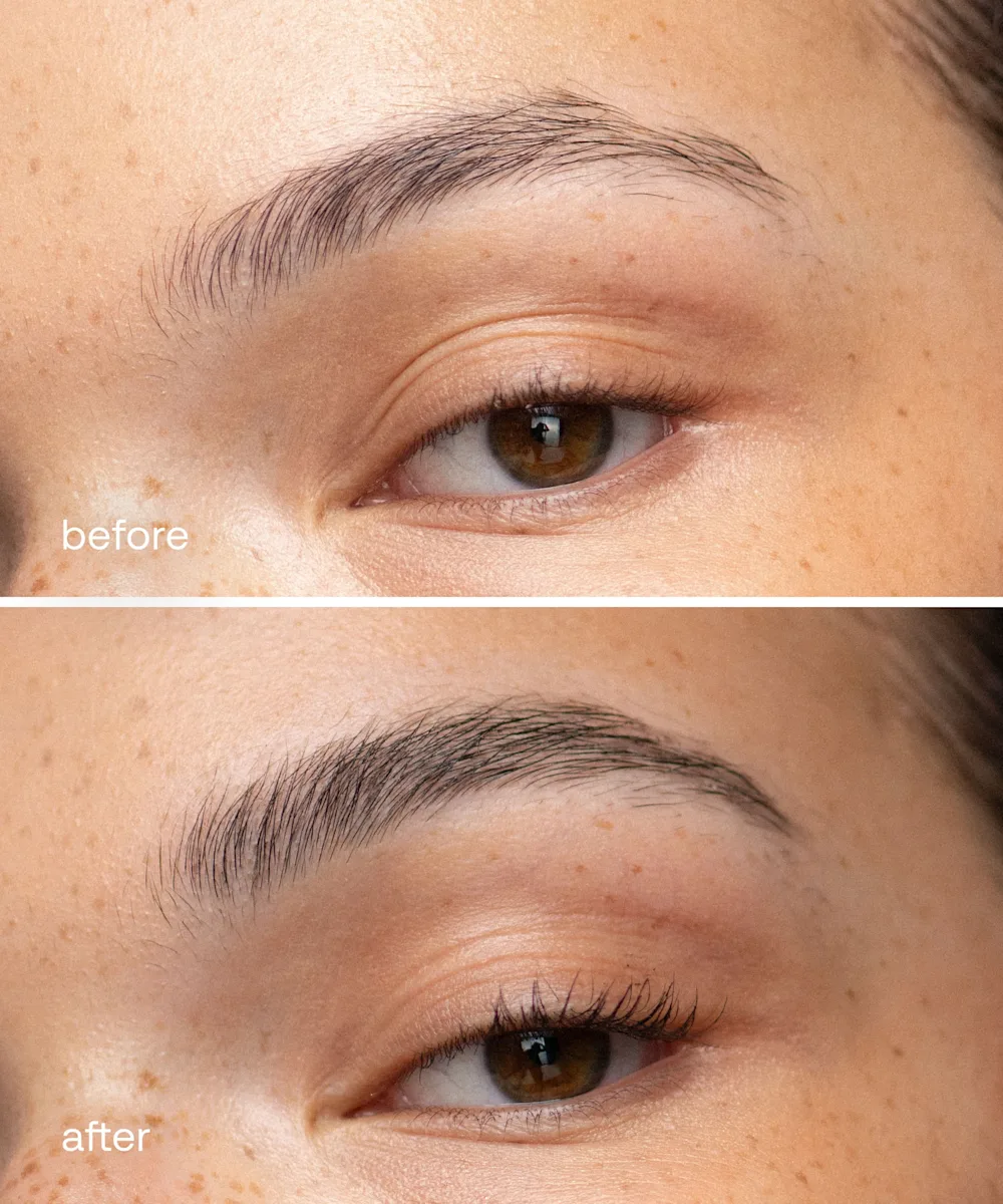 - Mit dem Pinsel das Produkt vermischen und die Augenbrauen erweichen und bürsten.